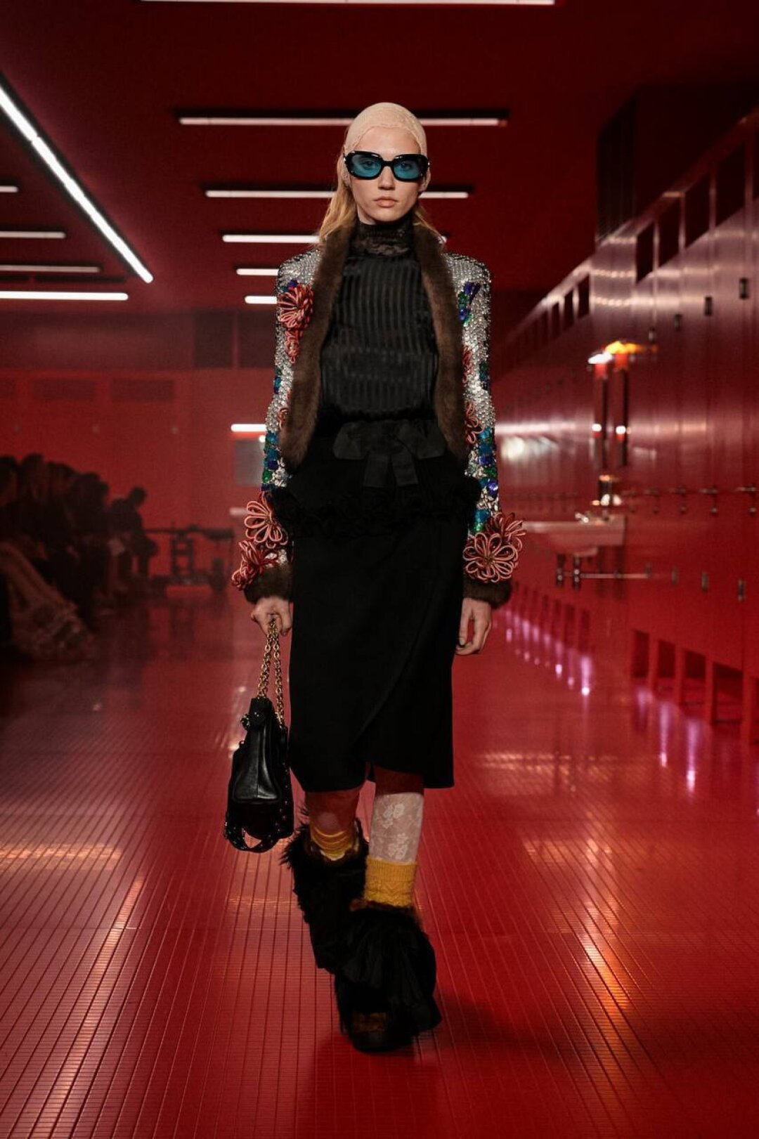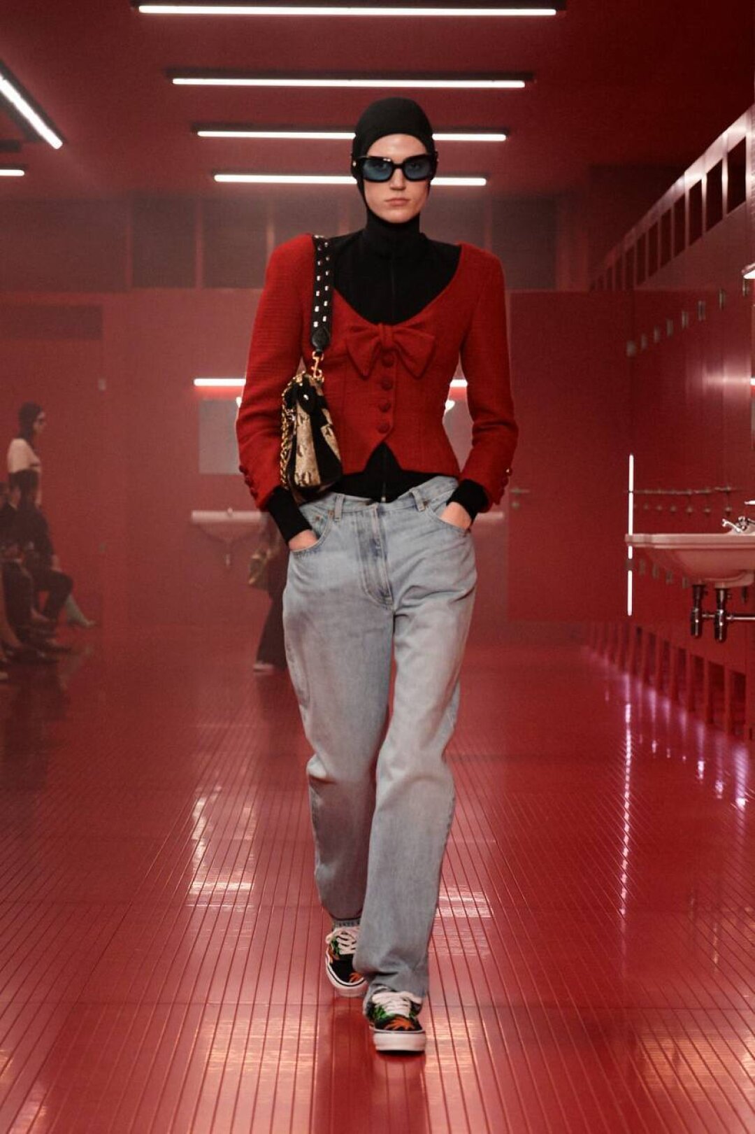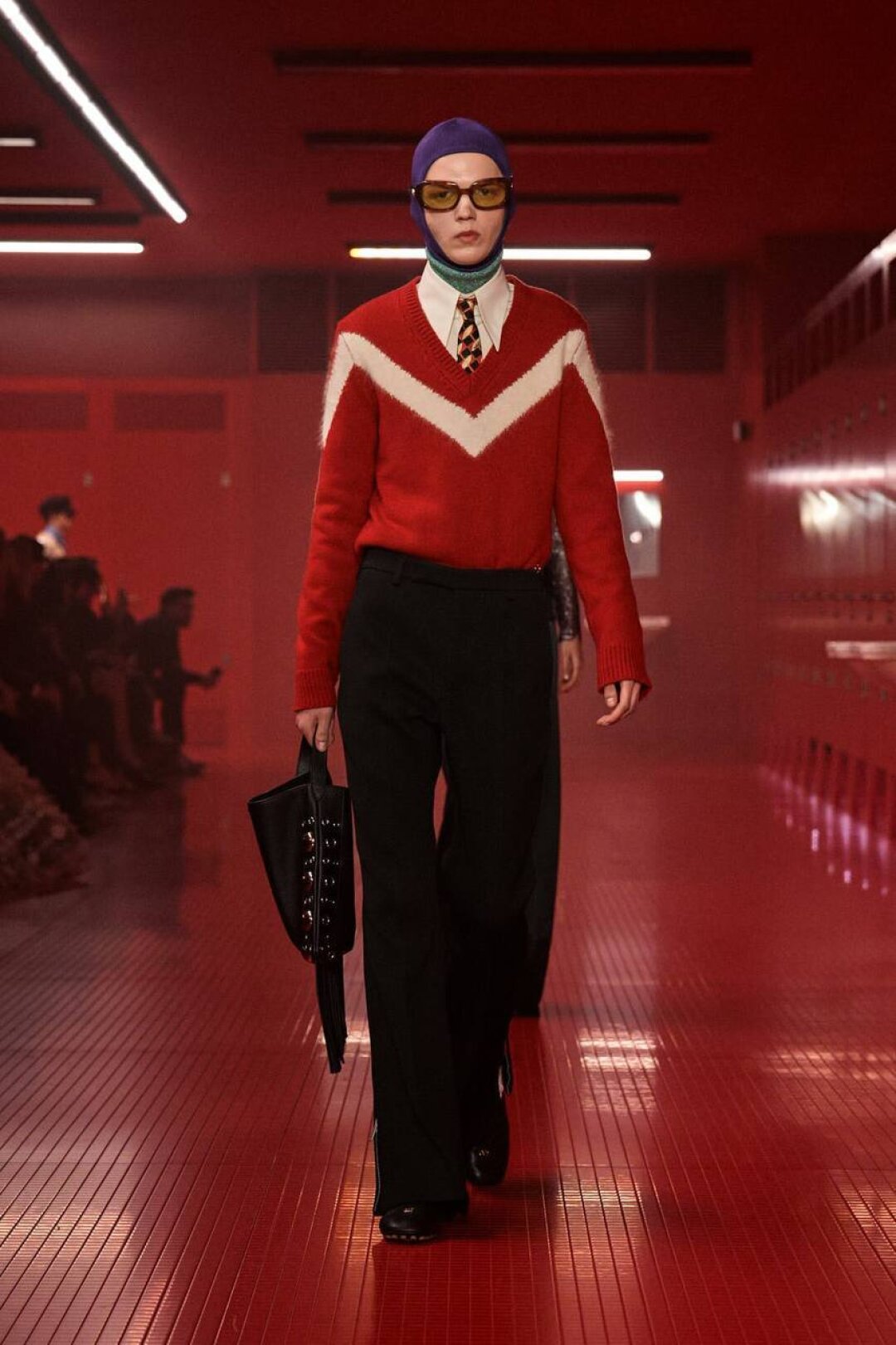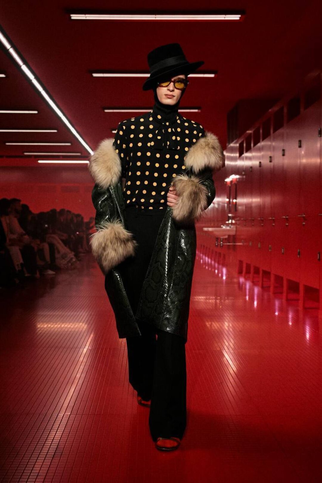 В новой коллекции Le Méta-Théâtre des Intimités («Мета-театр интимности») Алессандро Микеле размышляет о личном и публичном. В качестве декораций креативный директор выбрал раздевалку общественного бассейна, по-линчевски окрашенную в алый, которая, с одной стороны, символизирует вынужденное обнажение, а, с другой, по мнению Микеле, является точно такой же сценой для продуманного представления.