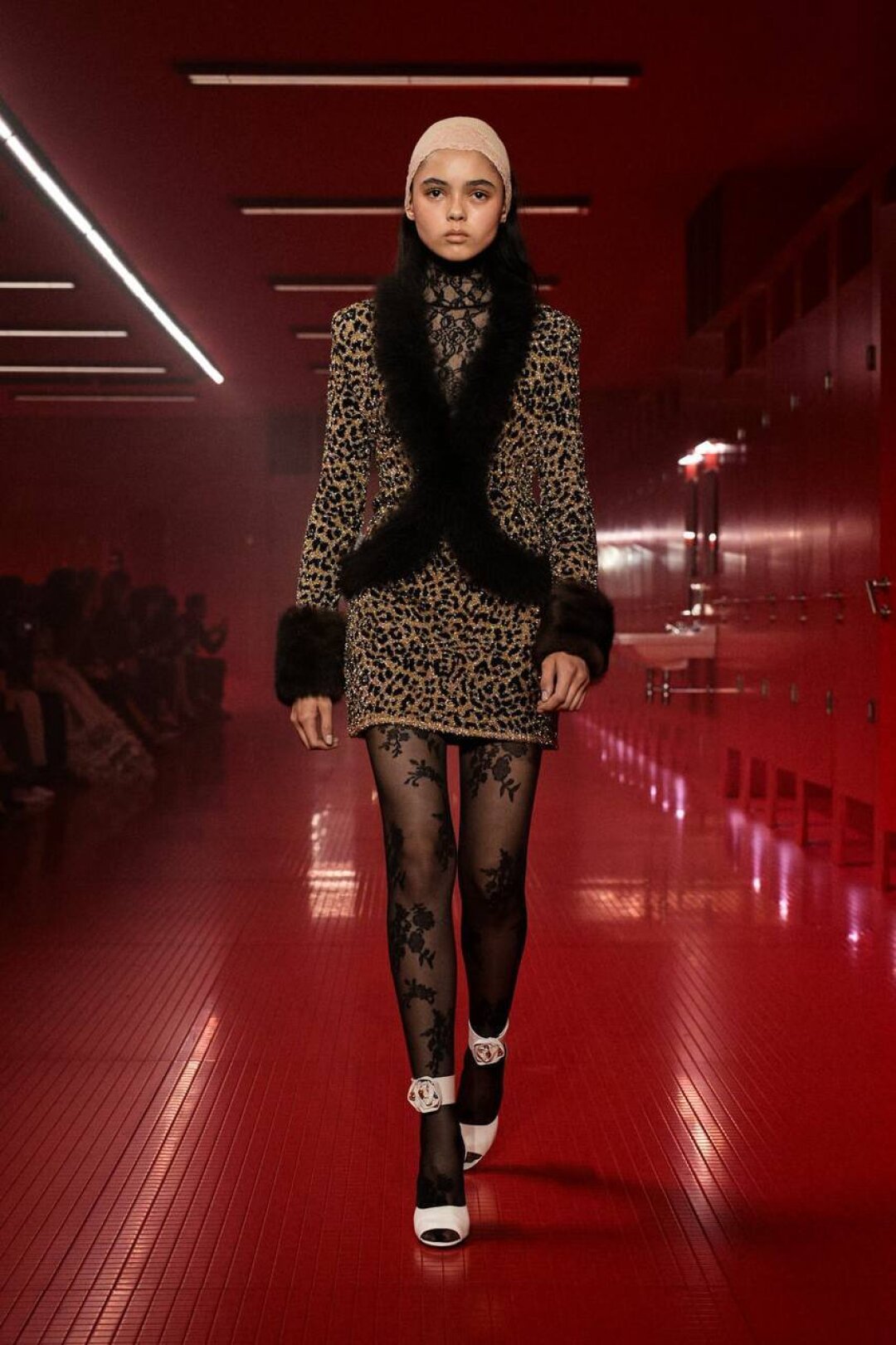 Помимо фэшн-намеков на интимность были и те, что отвечали за нарочитую демонстративность: леопардовое мини с пернатой горгерой, шелковая ретро-двойка с цветочным принтом в паре с золотистым жакетом, отороченным мехом, и атласное макси с ромбовидным цирковым узором (достался в наследство от кутюрной коллекции!).