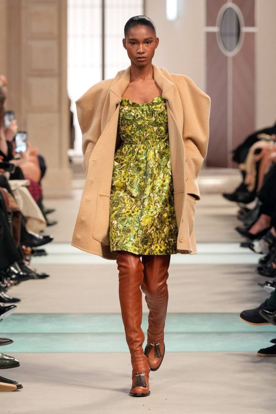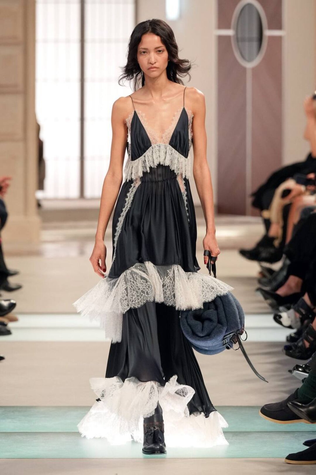 Пока креативные директора ставят себя в рамки определенной фэшн-концепции (вспоминаем сложносочиненные показы-вселенные Алессандро Микеле или твердо стоящий на ногах бохо Чемены Камали), Николя Жескьер вместо того, чтобы сковывать себя понятиями «вектор» или «почерк», жонглирует средневековыми воротниками-горгерами, ковбойскими казаками, шотландским тартаном, военными кителями, будуаркорными комбинациями и тихороскошными накидками из трикотажа, утрируя буйство (хотя, казалось бы, куда еще!) , гранд-панамками и вафельными сапогами-гармошкой.