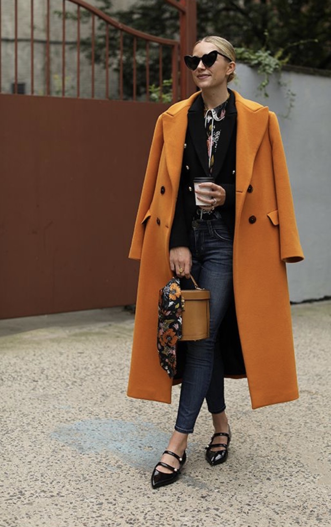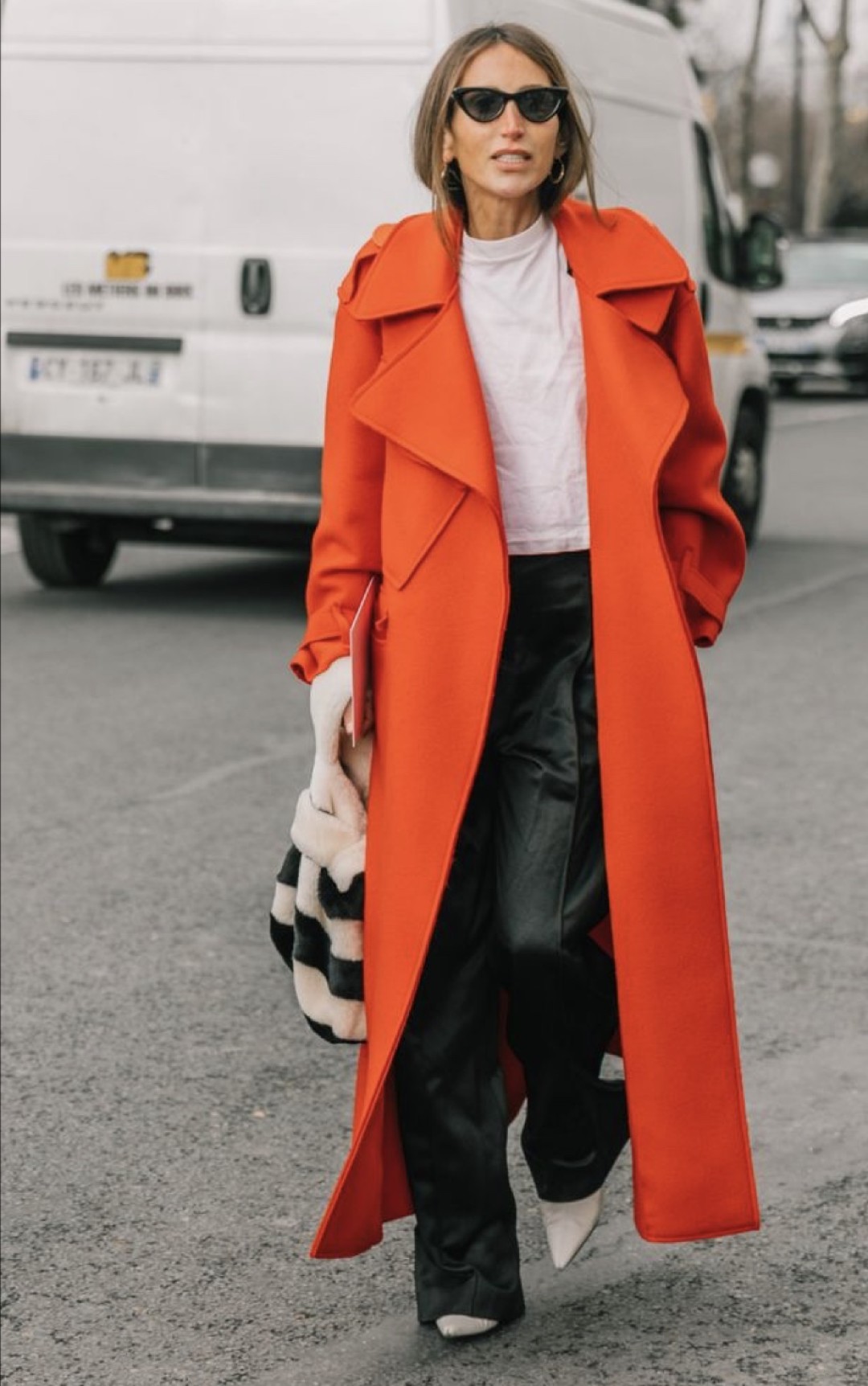 Можно сочетать с неоновыми оттенками или выбрать смелый оранжевый монохром, а еще он будет идеально смотреться с базовой черно - белой гаммой.