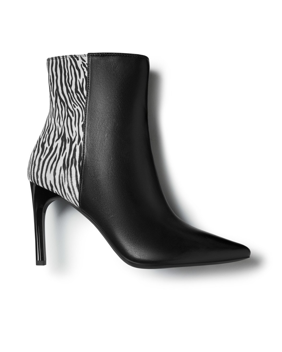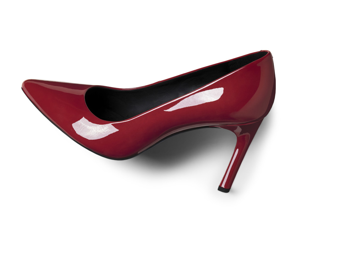 Балетки представлены в двух вариантах: с принтом, лакированными носом и небольшим квадратным каблуком, а также полностью лаковая модель в красно-черном цвете. Кожаные черные ботильоны на шпильке сзади украшены принтом под зебру, а классические лакированные туфли-лодочки выполнены в однотонном красном оттенке. Лаковые красные и черные элементы есть и в кроссовках — это вставки на заднике и по бокам.