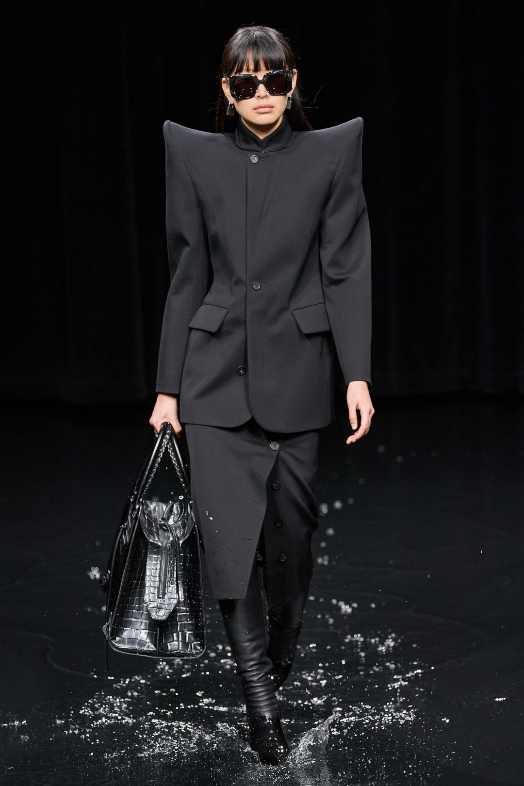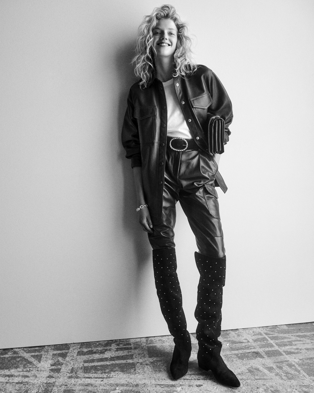 Кожаные брюки Claudie Pierlot – супермастхэв сезона – мы рекомендуем носить на лад 1980-х: с кожаными рубашками или бомберами, массивными украшениями и геометричной сумкой на цепочке. Весдь геометрическая эстетика тут превыше всего: строгие формы, прямые линии и безупречная симметрия делают вещи похожими на архитектурные объекты немецкой школы дизайна Баухаус.