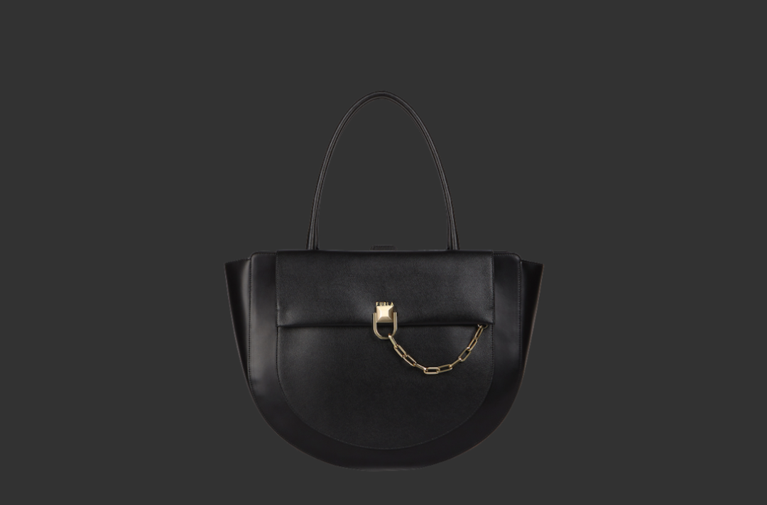 Сумка-овал? Конечно, да! Более того, Miss Mimi может превратиться в кросс-боди, если вытащить спрятанный длинный ремешок. Хит круизной коллекции Furla украшен квадратной золотой пряжкой и важнейшей приметой сезона – декоративной металлической цепью. Но главное, конечно же, форма: закругленные линии будто оказались под влиянием идей австрийского архитектора Фриденсрайха Хундертвассера, считавшего, что прямая линия пагубно, словно настоящий яд, влияет на здоровье человека. А здесь – одна сплошная польза!