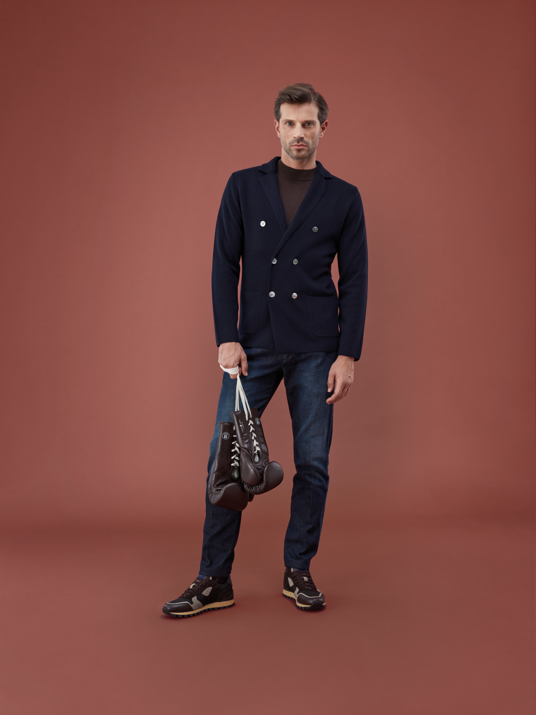 Дизайнеры бренда разработали новую концепцию мужской одежды, которую назвали B-Evolution. Тут все просто: любимые вещи из линии B-Washable теперь можно стирать в машинке и даже не задумываться об их глажке, а все благодаря умным тканям B-Tech. Вот это называется осознанный подход! Он присутствует во всех элементах новой коллекции, но наш фаворит — двубортный пиджак линии B-Relaxed из ультрафункционального и суперэластичного джерси. Что это значит? То, что в нем можно двигаться абсолютно свободно и при желании даже заняться спортом. Но наш совет — отправляйтесь на свидание.