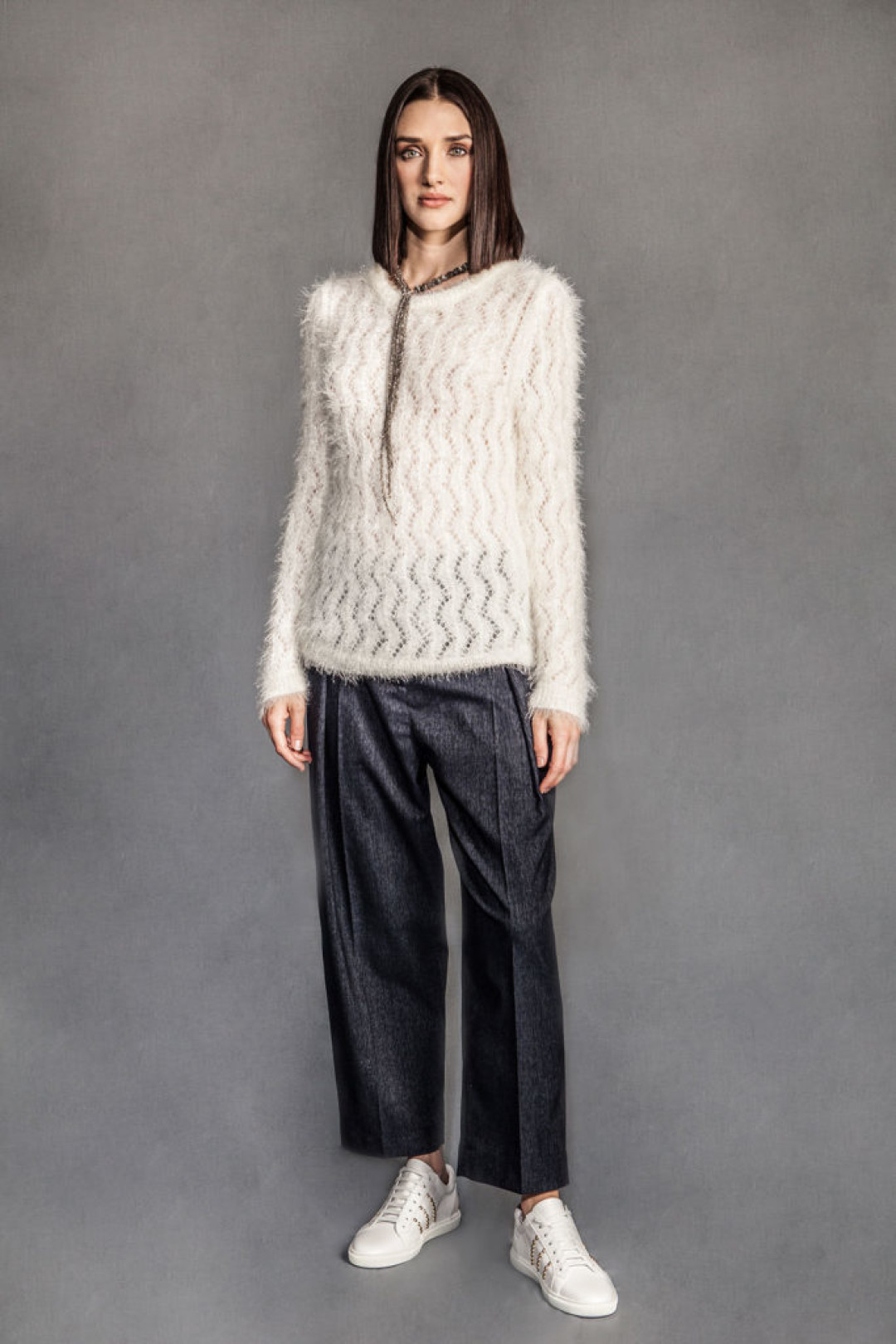 В зимней коллекции Rocco Ragni собраны оттенки серого во всех интерпретациях: от платьев асимметричного кроя и строгих костюмов до сверкающих люрексовой нитью кардиганов. Но главное — превосходный кашемир, который производится в Умбрии, прямо на родине марки. Им совершенно заслуженно гордится Рокко Раньи, создатель бренда, который очень по-итальянски не может удержаться в грифельной палитре и придумывает ослепительно-желтые и дерзко-розовые джемперы и кардиганы. А мы и рады!
