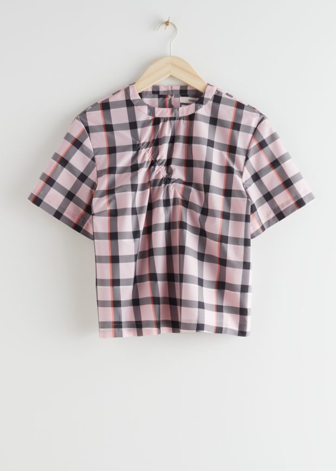 Это первая коллаборация & Other Stories, доступная в России (на сайте и в офлайн-магазине в Москве), над ней работала дизайнер и основательница датского бренда Brøgger Джули Бреггер. Коллекция соответствует эстетике 80-х — в ней много цвета (поимущественно красного и розового), объемные гипертрофированные плечи, цветочные принты, клетка.