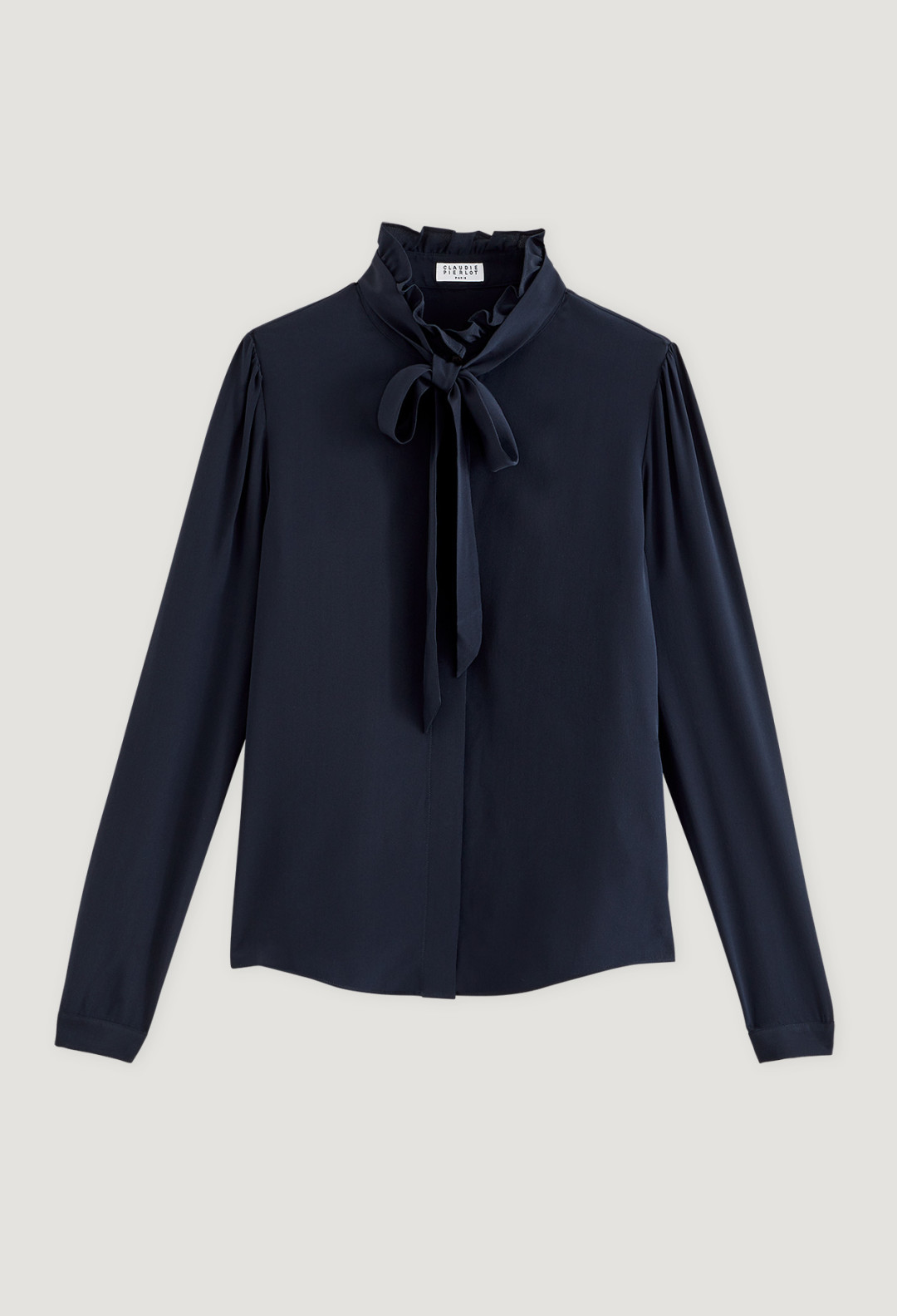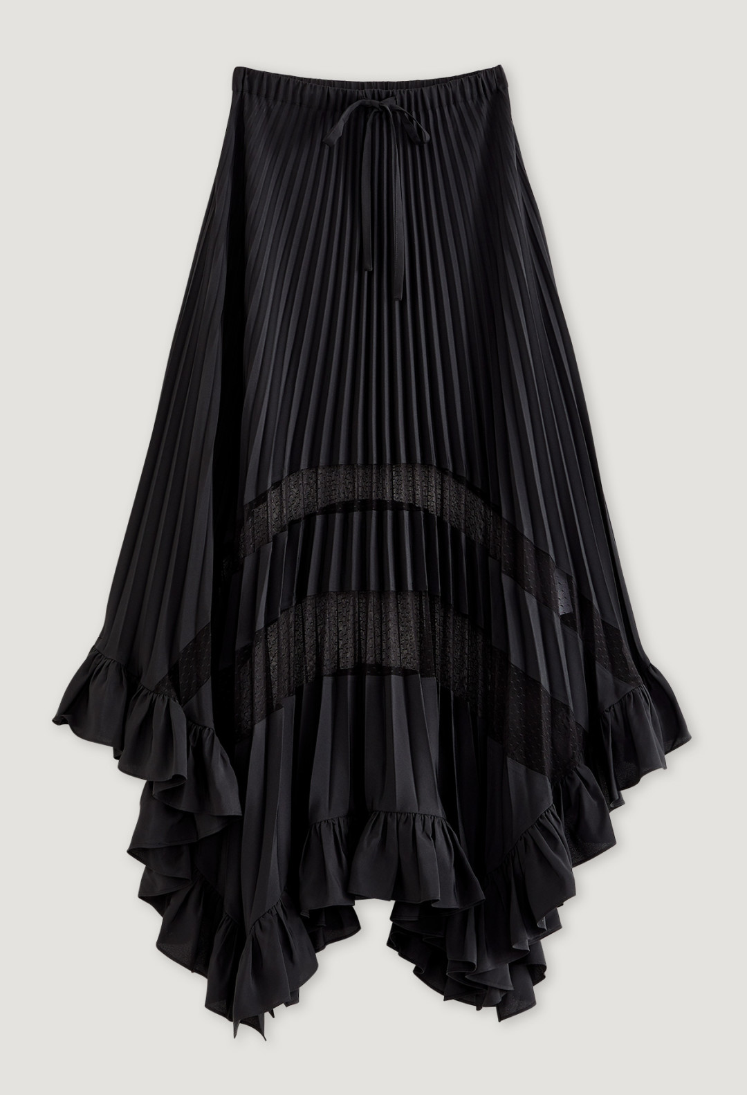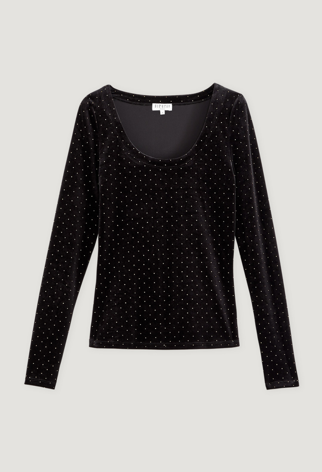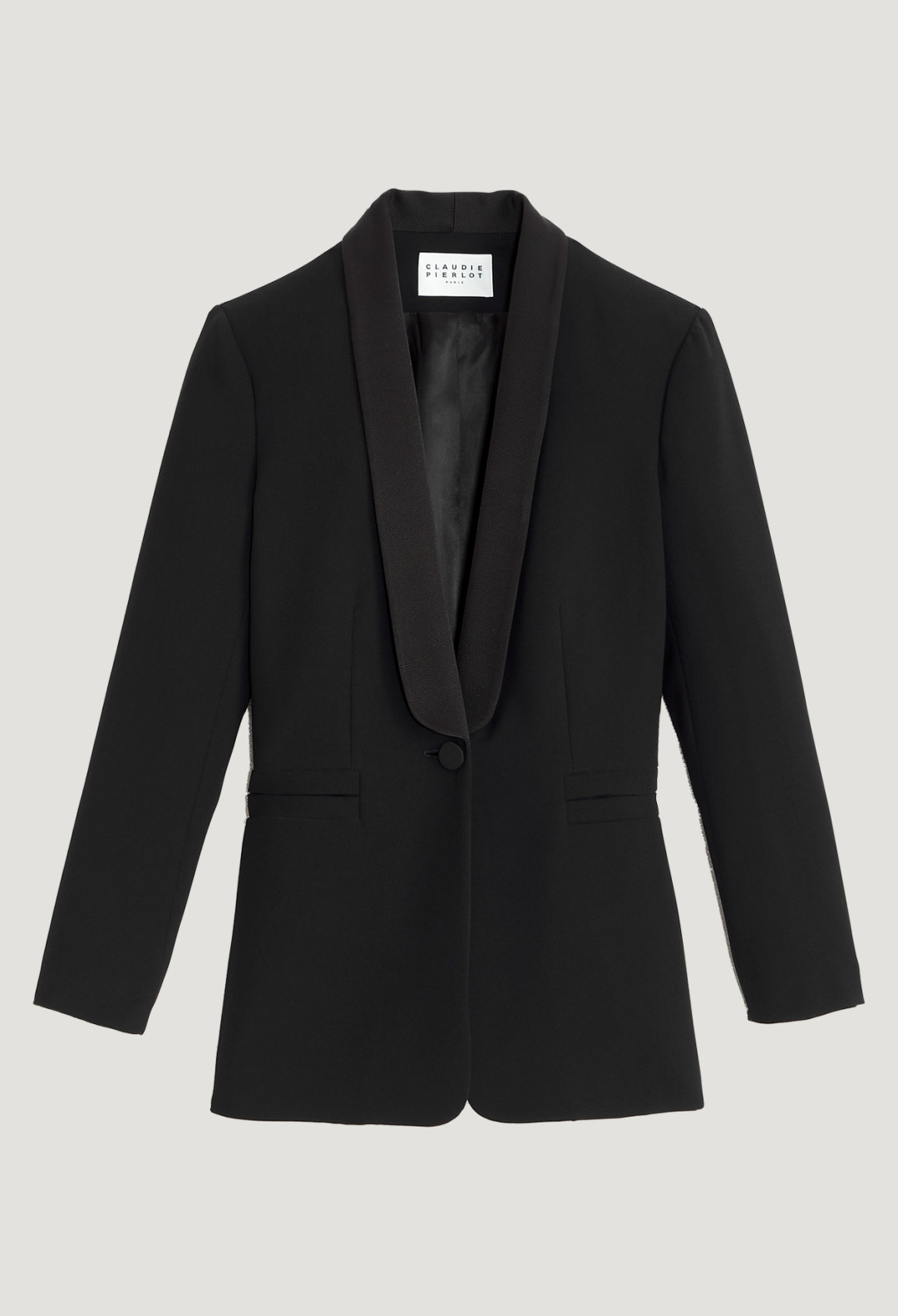 Вся вечерняя коллекция Claudie Pierlot выполнена в угольно-черном цвете, исключение — джинсы с высокой талией классического оттенка, которые следует носить с бархатным боди, украшенном стразами. Платья и аксессуары дизайнеры бренда тоже дополнили металлизированными элементами: заклепками, пайетками, шипами. Смягчают агрессивное настроение воротники-стойки, силуэты с запахом, жаккардовые детали, оборки и длина макси. В общем балансируем на грани, как, впрочем, и весь 2020 год.