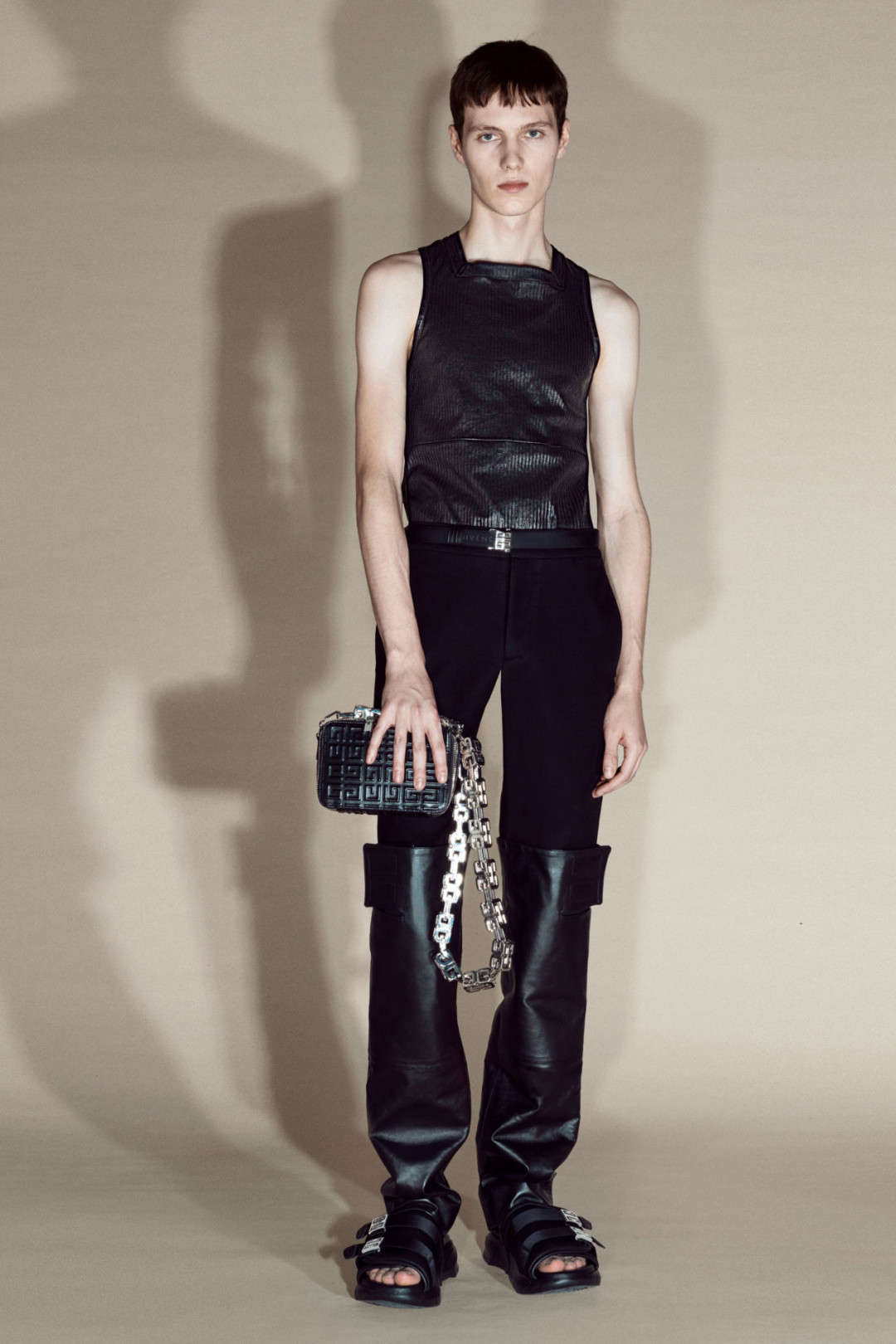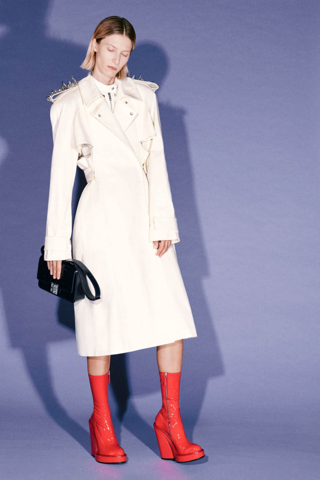 Мэтью Уильямс представил свою дебютную работу для Givenchy — коллекцию Pre-Fall. В нее вошли тренчи, платья макси и миди, укороченные бомберы, двубортные пальто, жакеты, узкие брюки. Многие вещи, обувь, а именно шлепанцы, и аксессуары украсили шипы и заклепки, а также массивные цепи. Женские образы из коллекции дополнили виниловые ярко-красные ботинки на платформе.