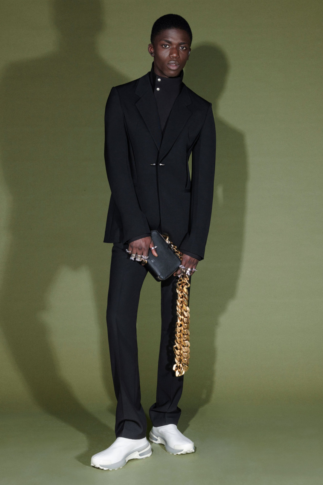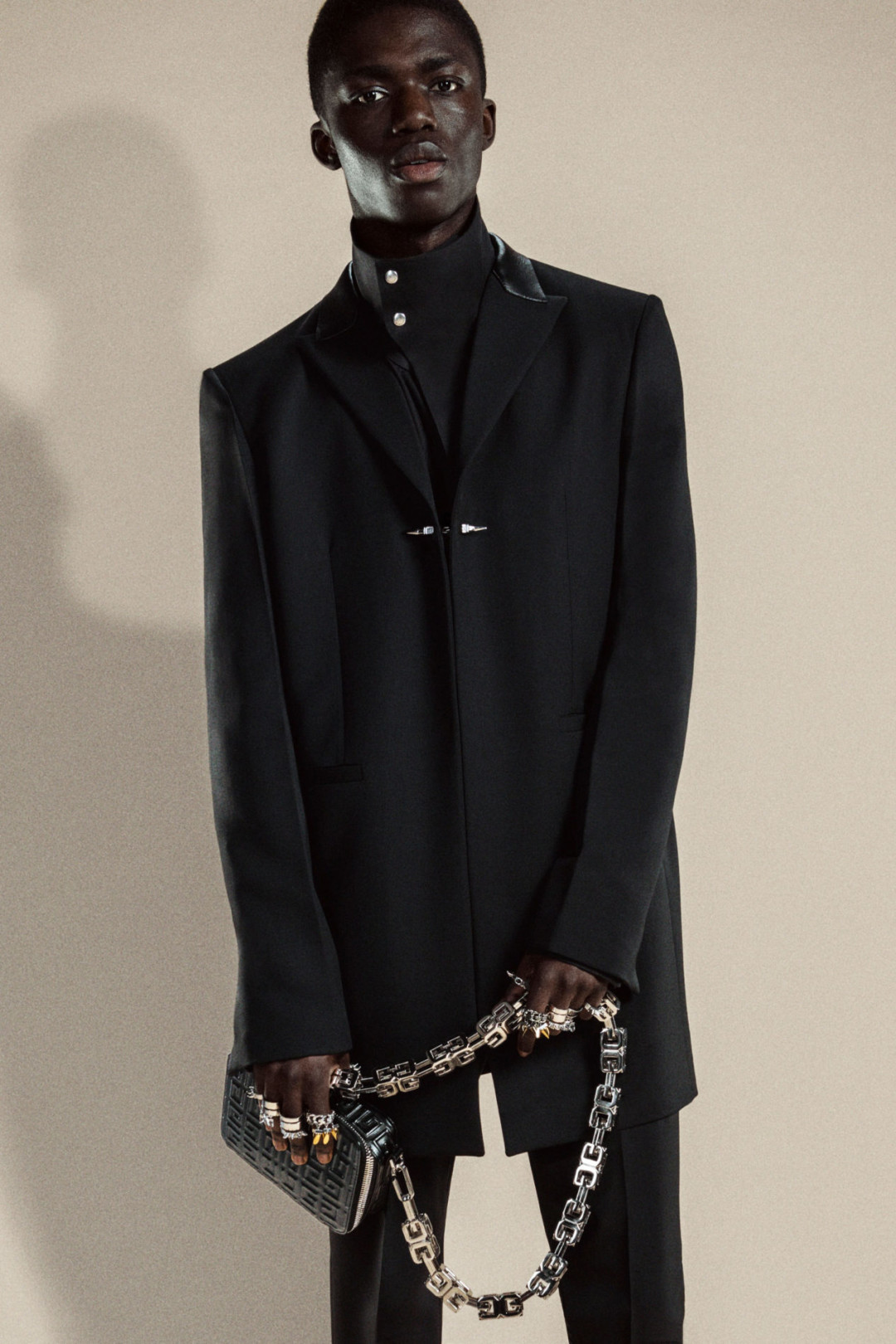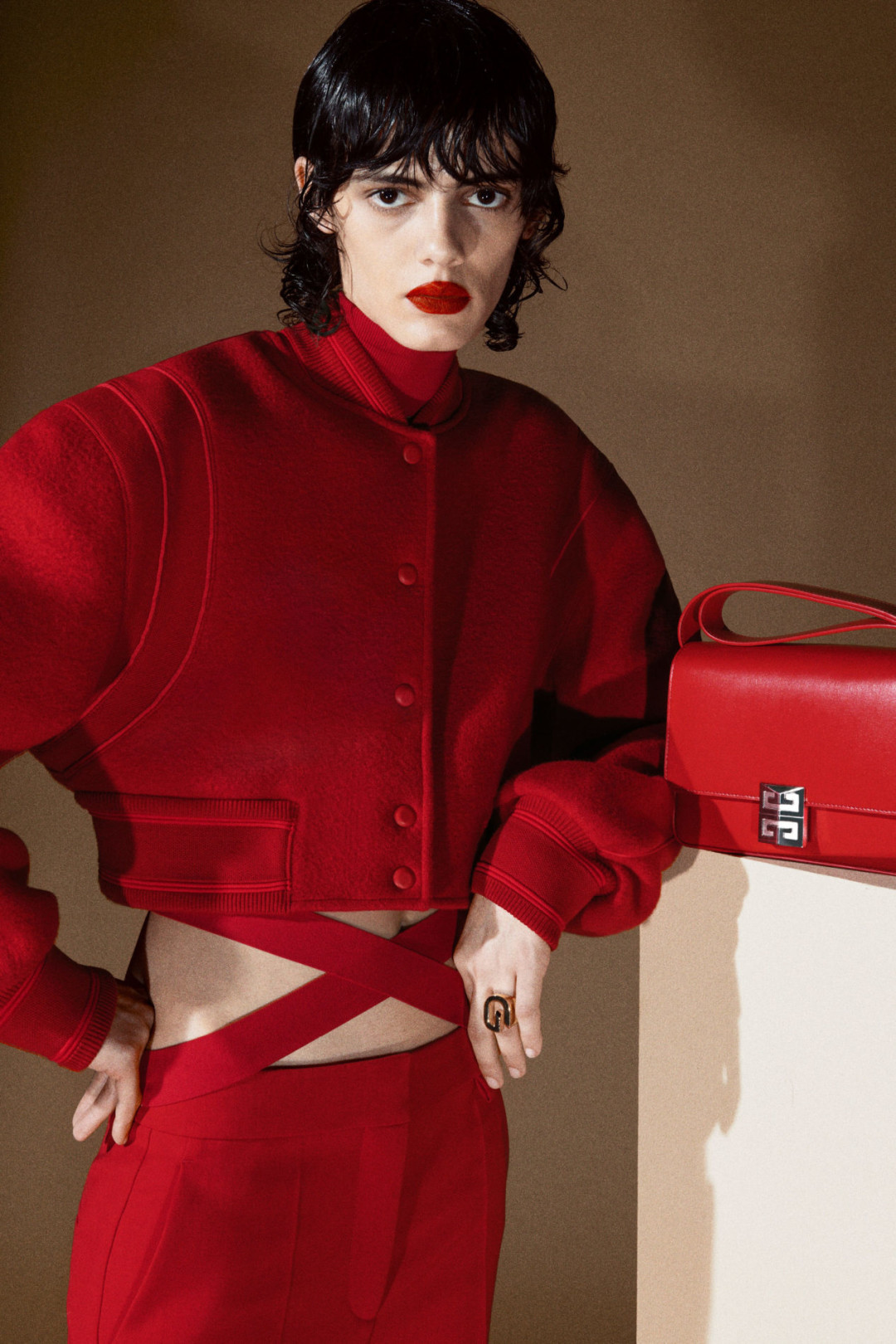 Мэтью Уильямс сделал реверанс в сторону истории и наследия Givenchy — он использовал монограмму бренда в качестве принта на многих вещах и сумках. Коллекция Pre-Fall выдержана в черном, красном, белом, оливковом цветах.
