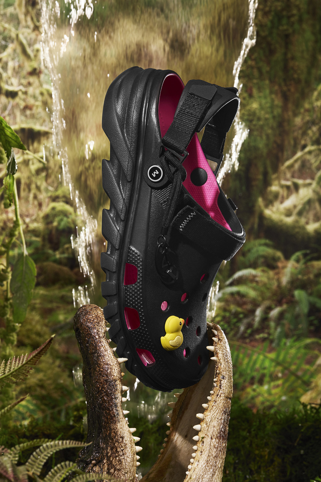 Свежая совместная коллекция американского исполнителя и бренда Crocs — их пятая коллаборация. На этот раз они выпустили модель сабо Post Malone x Crocs Duet Max Clog II, причем в двух цветах — розовом и черном. Новинка отличается массивной подошвой, поворотными пяточными ремешками с регулируемыми застежками-липучками, карабинами и заклепками с символикой Post Malone.