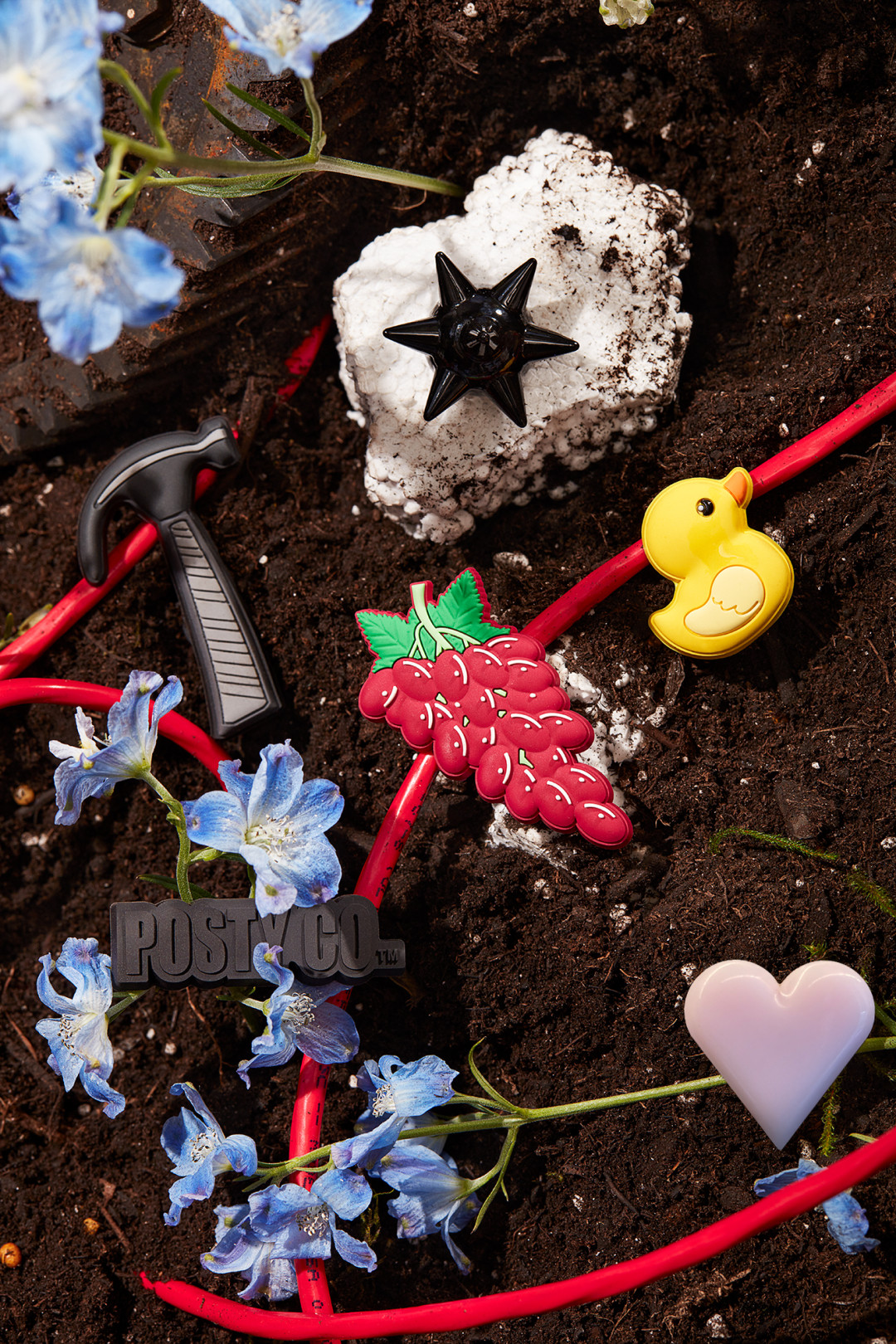 Кроме сабо, рэпер и Crocs представили новые джиббитсы (клипсы) — PostyCo Pink 3 Pack и PostyCo Black 3 Pack. Теперь кроксы можно украсить гроздью винограда, сердцем, резиновой уточки и татуировками самого Post Malone. Продаются джиббитсы отдельно.