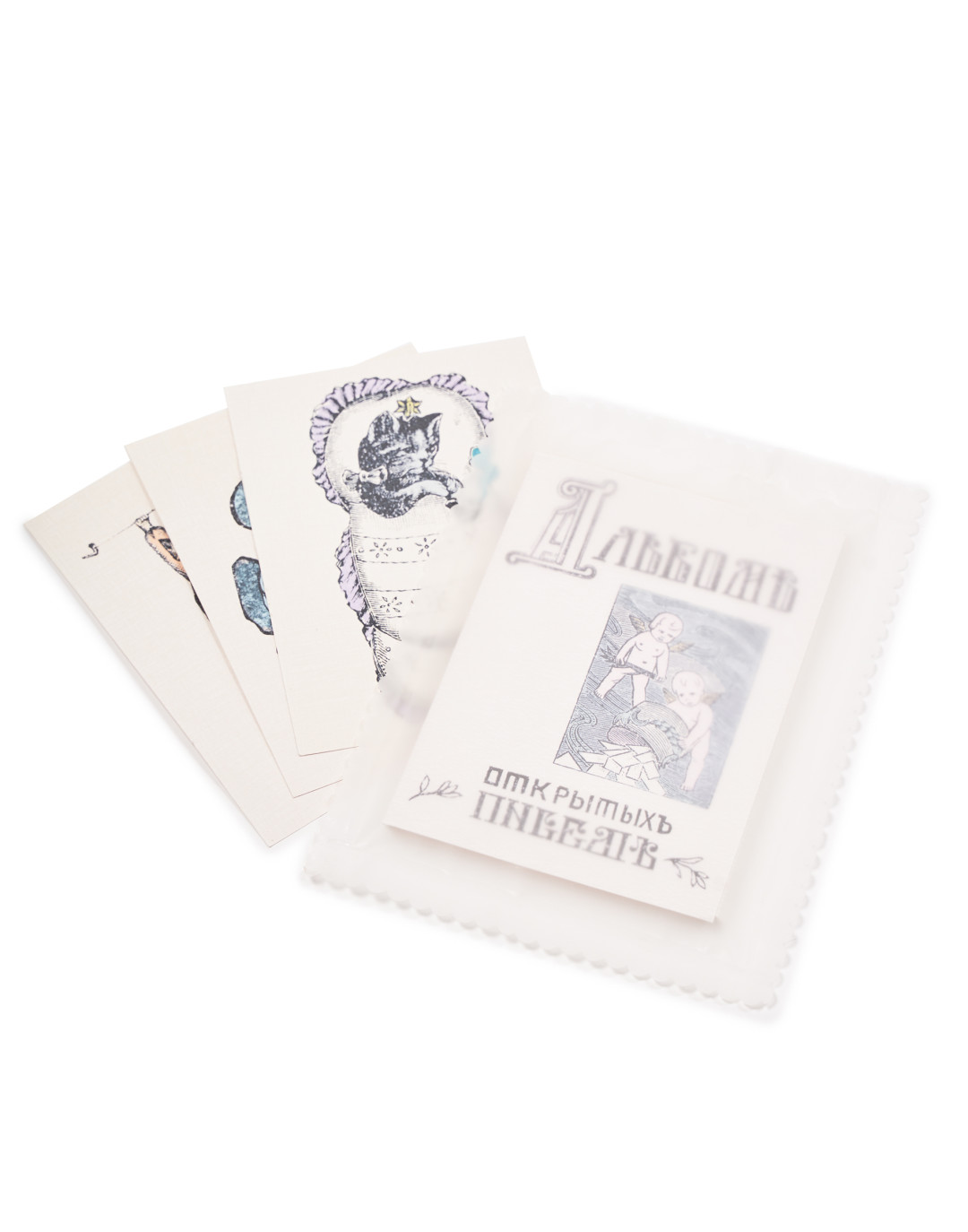 Чтобы создать подарочный набор, команда RomaUvarovDesign на протяжении нескольких месяцев изучала архивы и фонды библиотеки, переосмысливая изображения старопечатных журналов, книг, альбомов, календарей, прейскурантов. Все принты коллекции отписаны вручную на основе этих изображений с сохранением аутентичного дизайна.