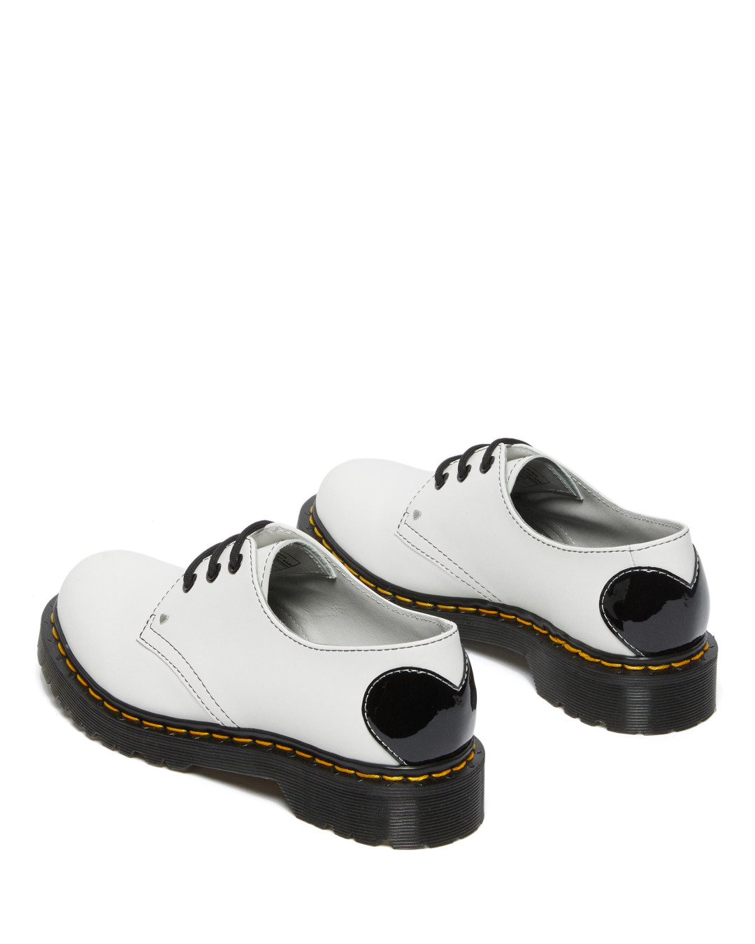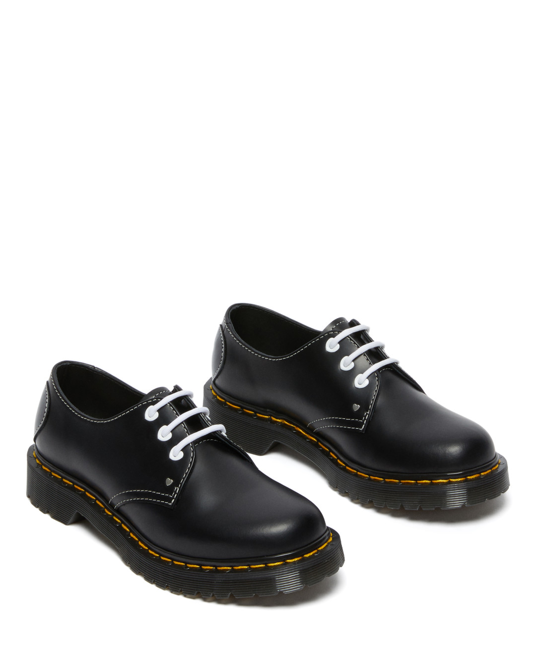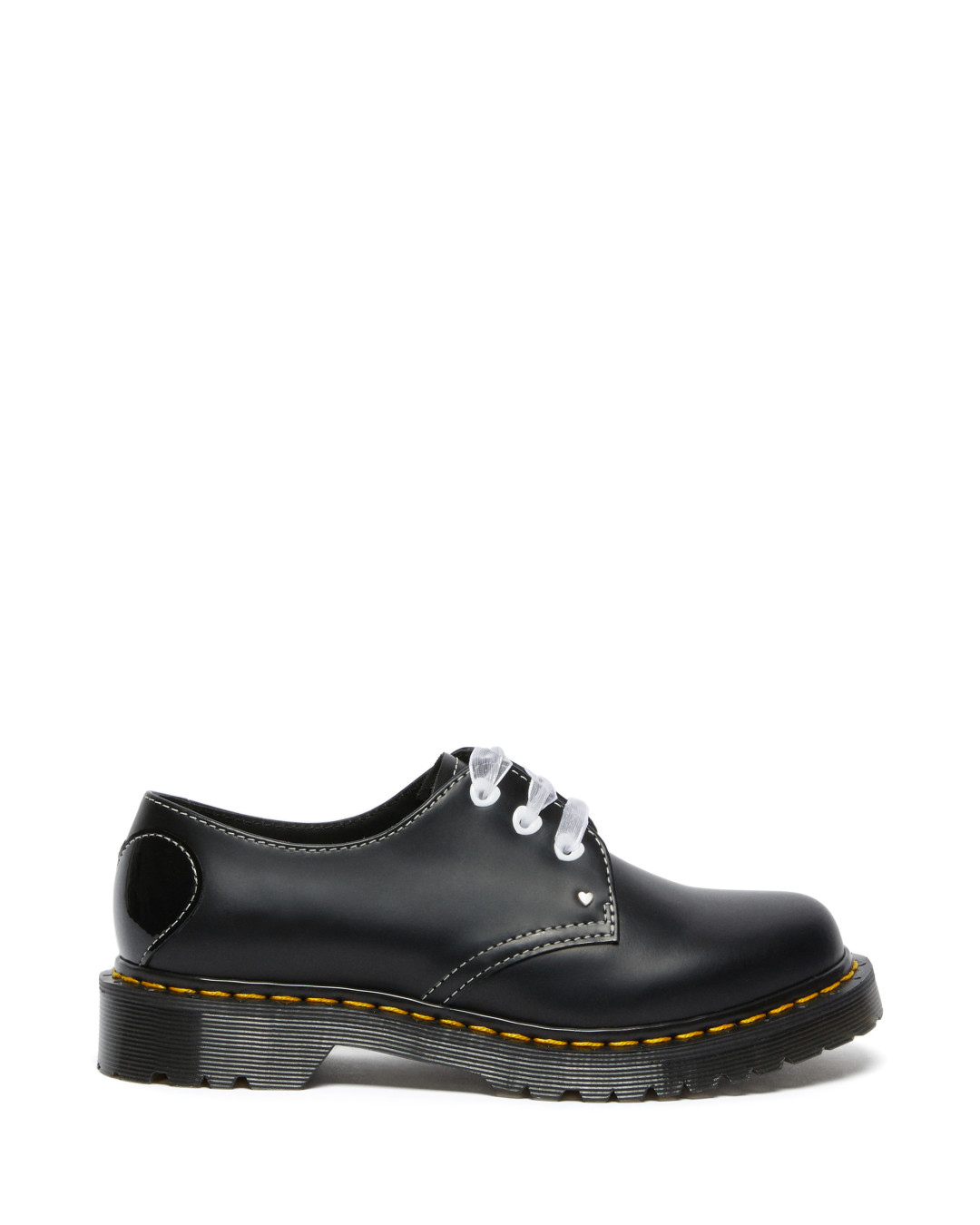 1461 Hearts объединяет два вида кожи — классическую мягкую и запатентованную брендом кожу Lamper. Задний ремень модели украшен сердцем и люверсами, а также пара дополнена тисненной аппликацией в виде сердца на задней части ботинка. Грубая подошва BEN и культовая желтая прострочка остались на месте.
