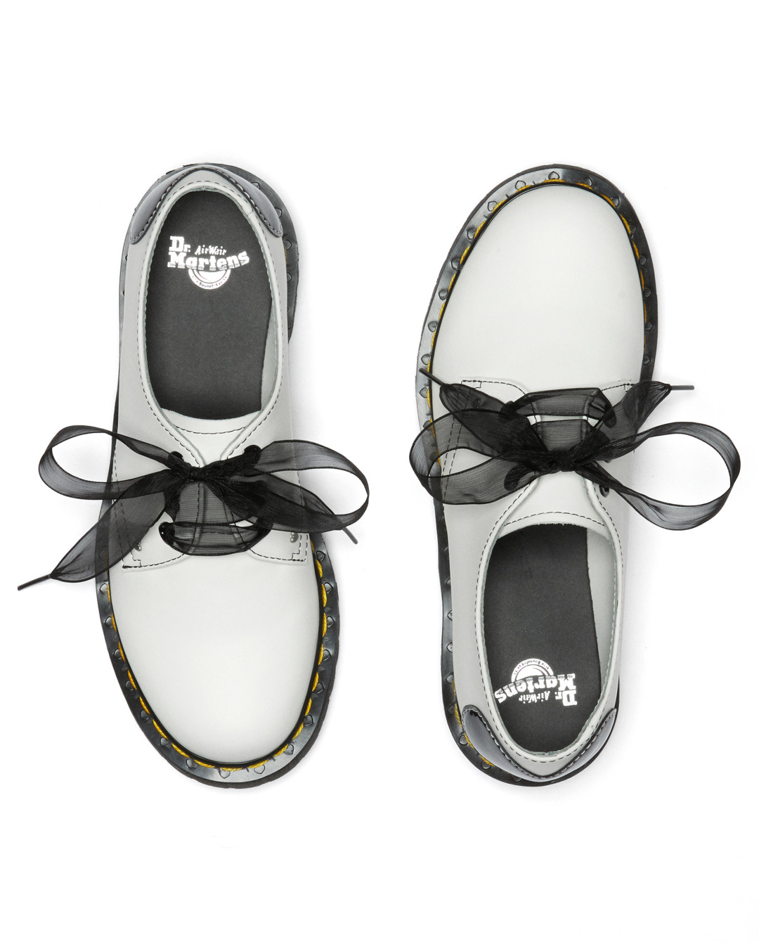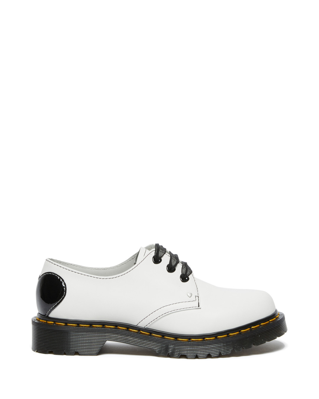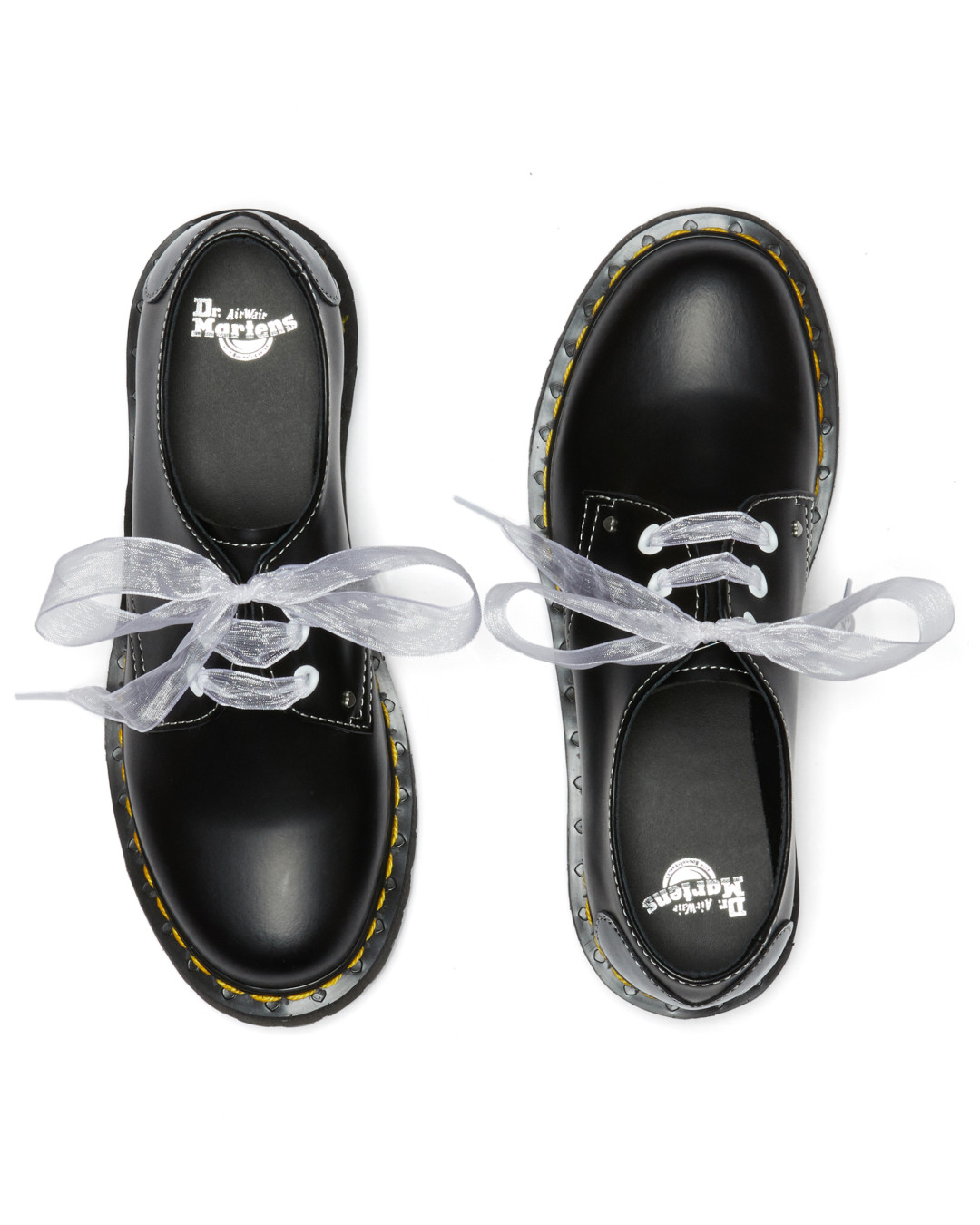 1461 Hearts объединяет два вида кожи — классическую мягкую и запатентованную брендом кожу Lamper. Задний ремень модели украшен сердцем и люверсами, а также пара дополнена тисненной аппликацией в виде сердца на задней части ботинка. Грубая подошва BEN и культовая желтая прострочка остались на месте.