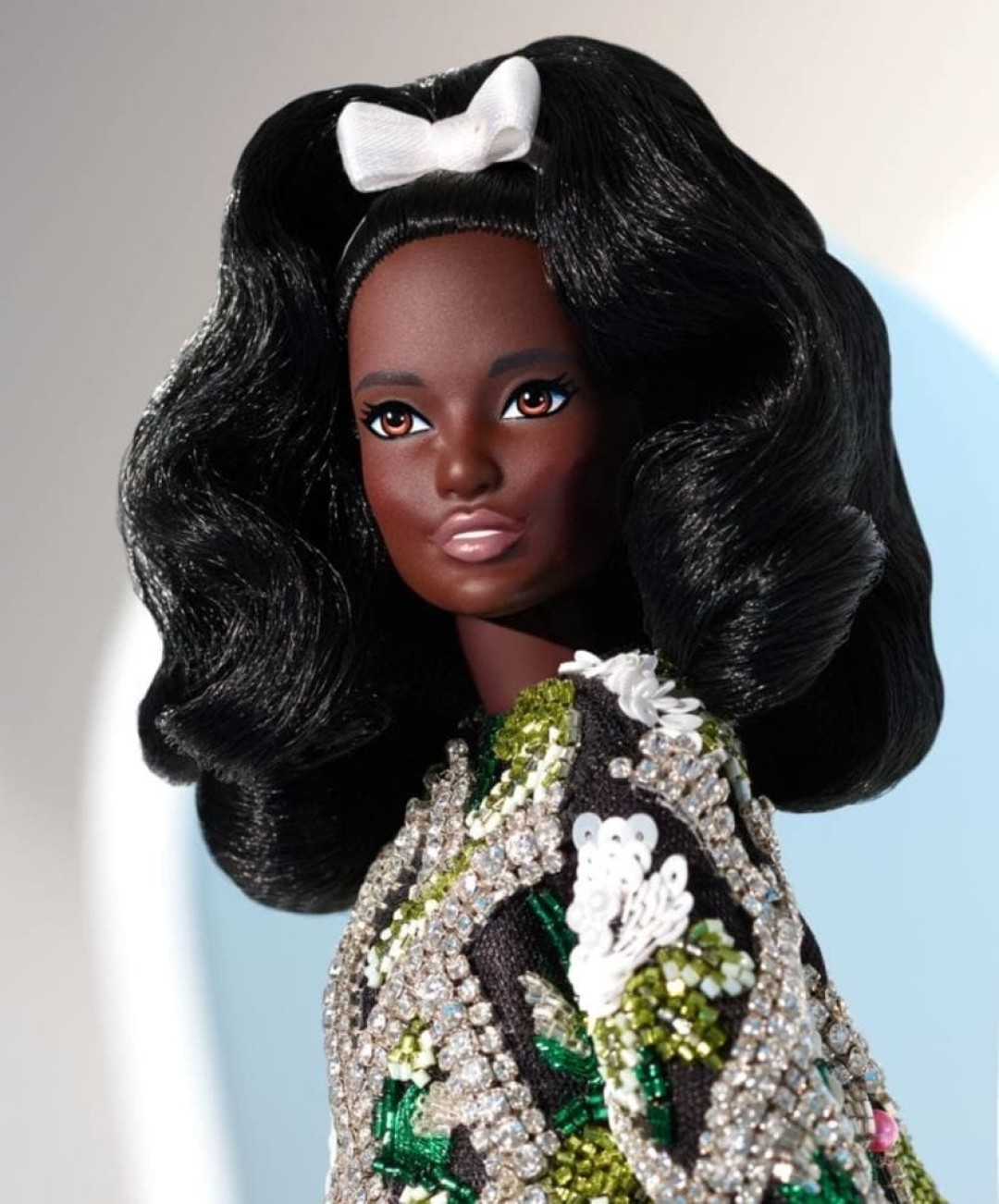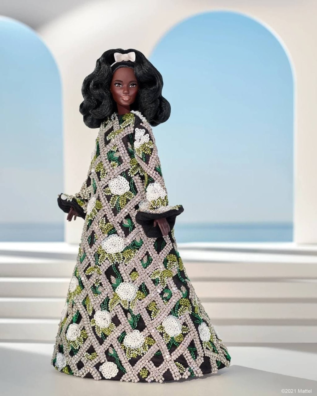 Платье для Barbie украшено кристаллами. На его создание у ателье Richard Quinn ушло 10 дней.