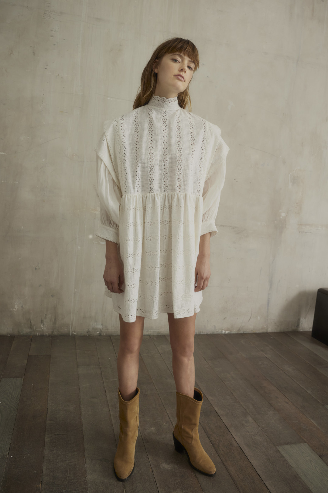 Особое место в новой коллекции Claudie Pierlot занимают аксессуары: плетеные сумки-корзины, шелковые невесомые платки, пояса с круглыми пряжками, напоминающими солнце. Они призваны усилить летнее настроение и без того теплой и свободной коллекции, состоящей из невесомых рубашек, воздушных платьев, костюмов в полоску, шорт и вязаных топов. Все — янтарных и ванильных цветов, которые согревают не хуже полуденного солнца. Гардероб для путешествия мечты готов!
