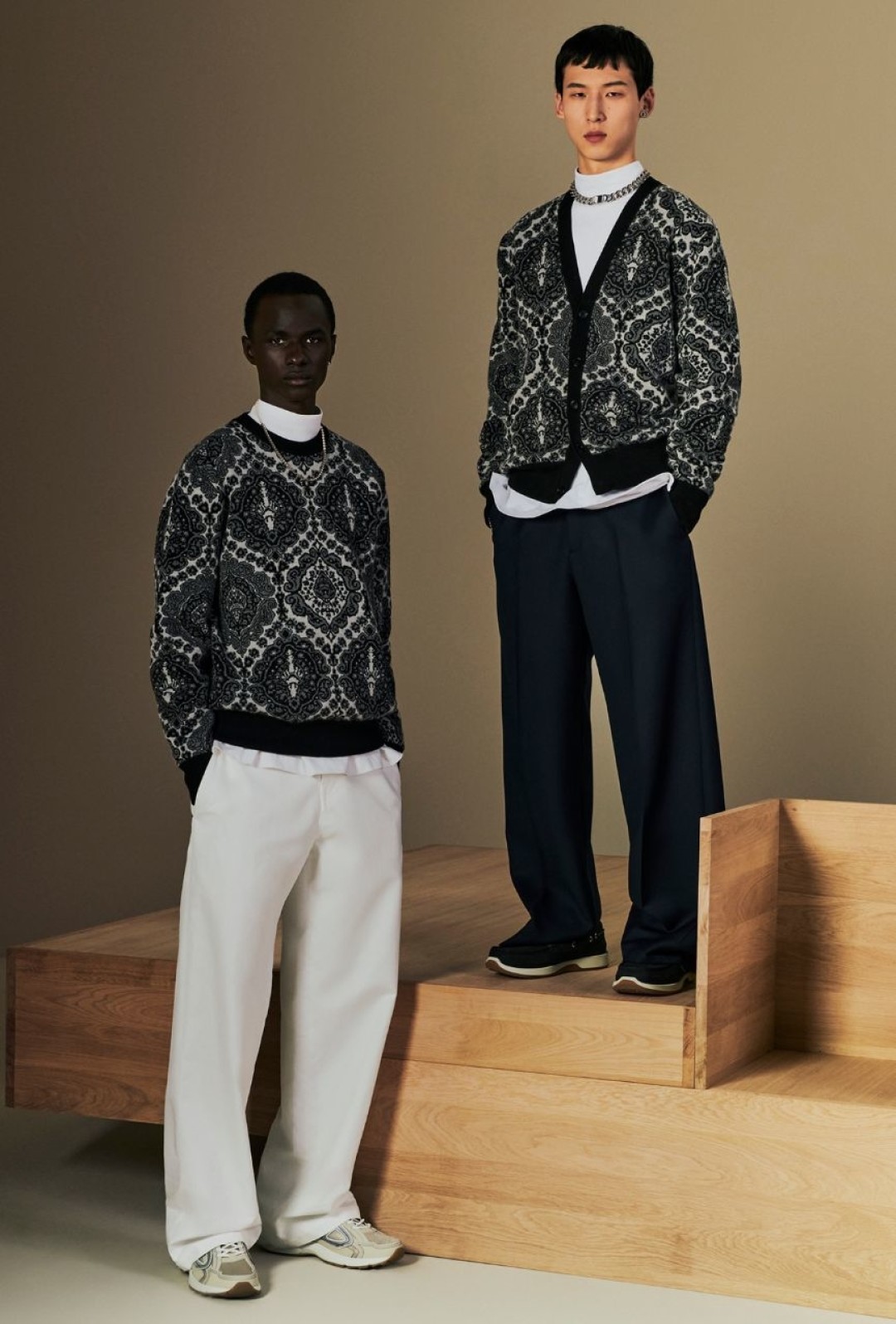 Кроме архивных силуэтов в мужской коллекции Dior resort 2022 можно заметить и спортивные, например, шорты, трико и бомберы. Они замиксованы с объемными брюками, кардиганами, водолазками, пиджаками и свитерами&