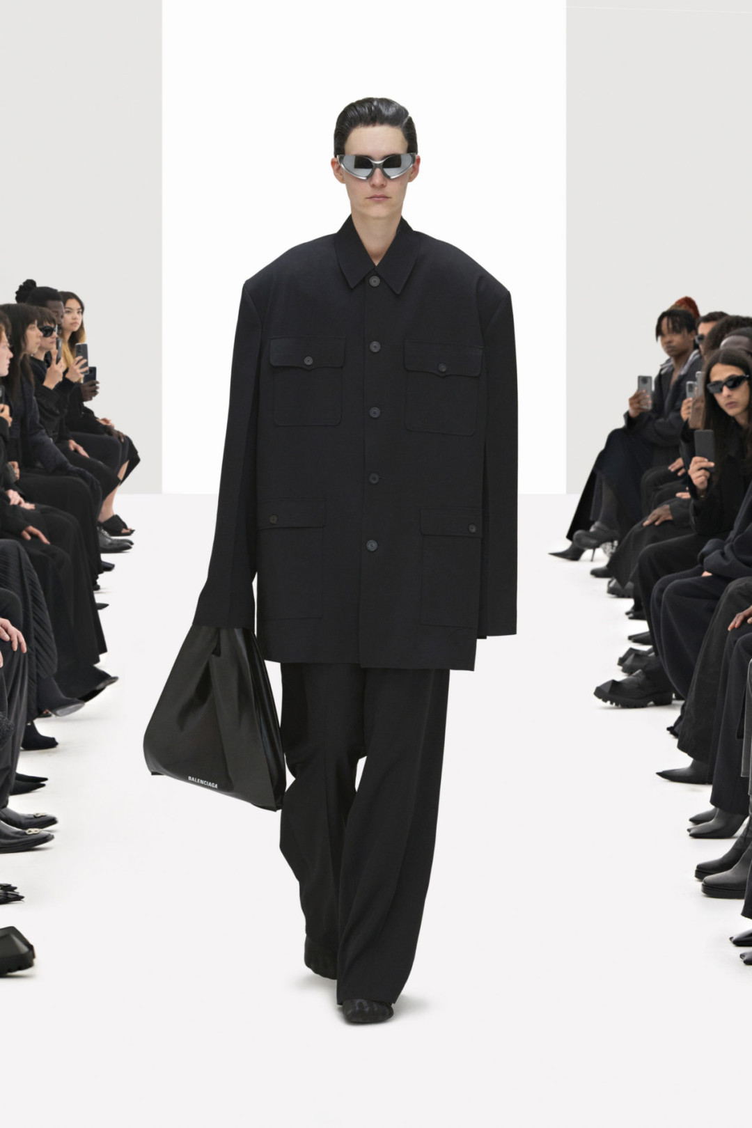 Все образы коллекции Balenciaga весна-лето 2022 представила одна модель, а точнее 3D-клоны художницы Элайзы Дуглас, которые создал автор видео для показа Квентин Деронзье. К слову, все гости, присутствующие на шоу, были в черных образах от Balenciaga.