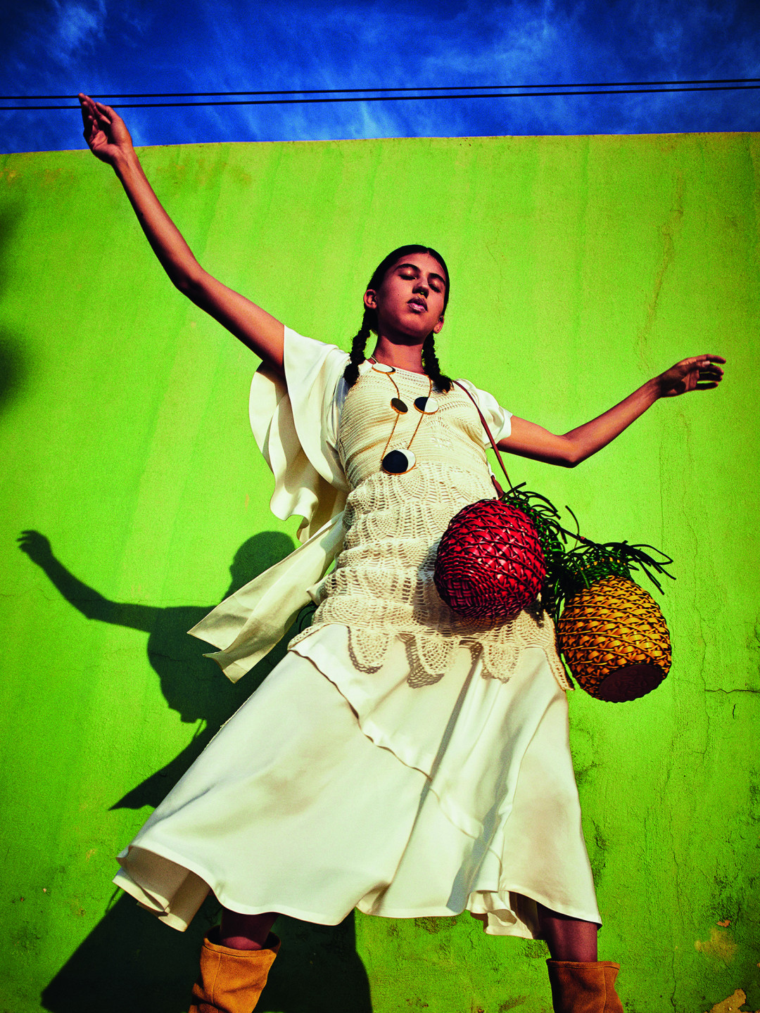 Летняя коллекция Loewe — это коллаборация с культовым бутиком Paula's Ibiza, мультибрендом, который с 1970-х не теряет статус фэшн-легенды Балеарских островов. Его основатели Армин Хейнеман и Стюарт Рудник стали проводниками особенной моды: более изысканной, чем хиппи, более смелой, чем бохо-шик. На Ибице креативный директор Loewe Джонатан Андерсон все детство проводил летние каникулы c семьей. И принты разноцветных ящериц, попугаев, диковинных цветов — оммаж тому беззаботному времени. Особенное внимание, как всегда, уделено аксессуарам: снова в коллекции знаковые широкополые соломенные шляпы, it-bags Balloon и Pochette на сезон обзавелись легкомысленными рюшами, а сумки-корзинки Anagram вручную сплетены ремесленницами из Колумбии. Но наш хартбрейкер — кроссбоди в виде ананаса!