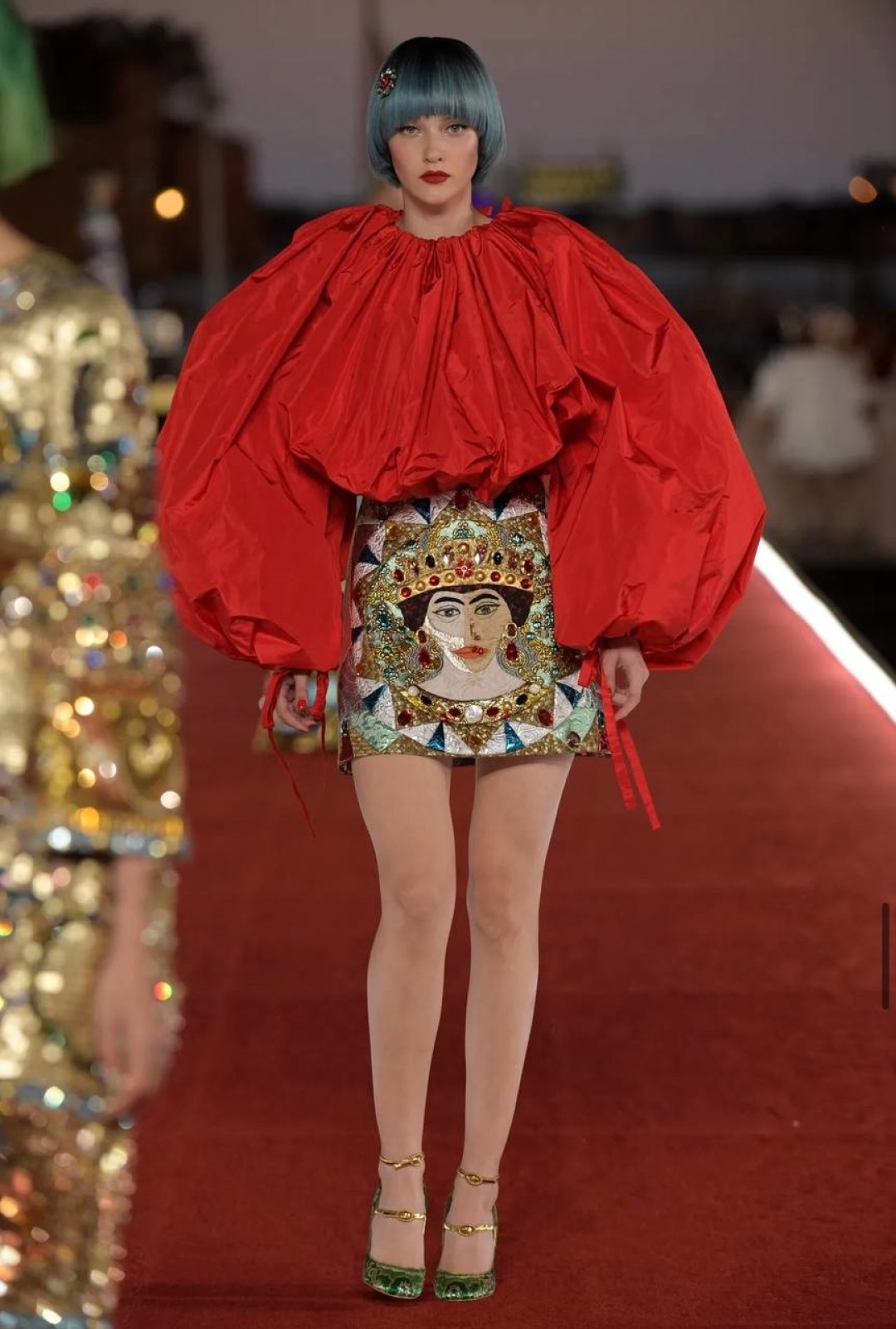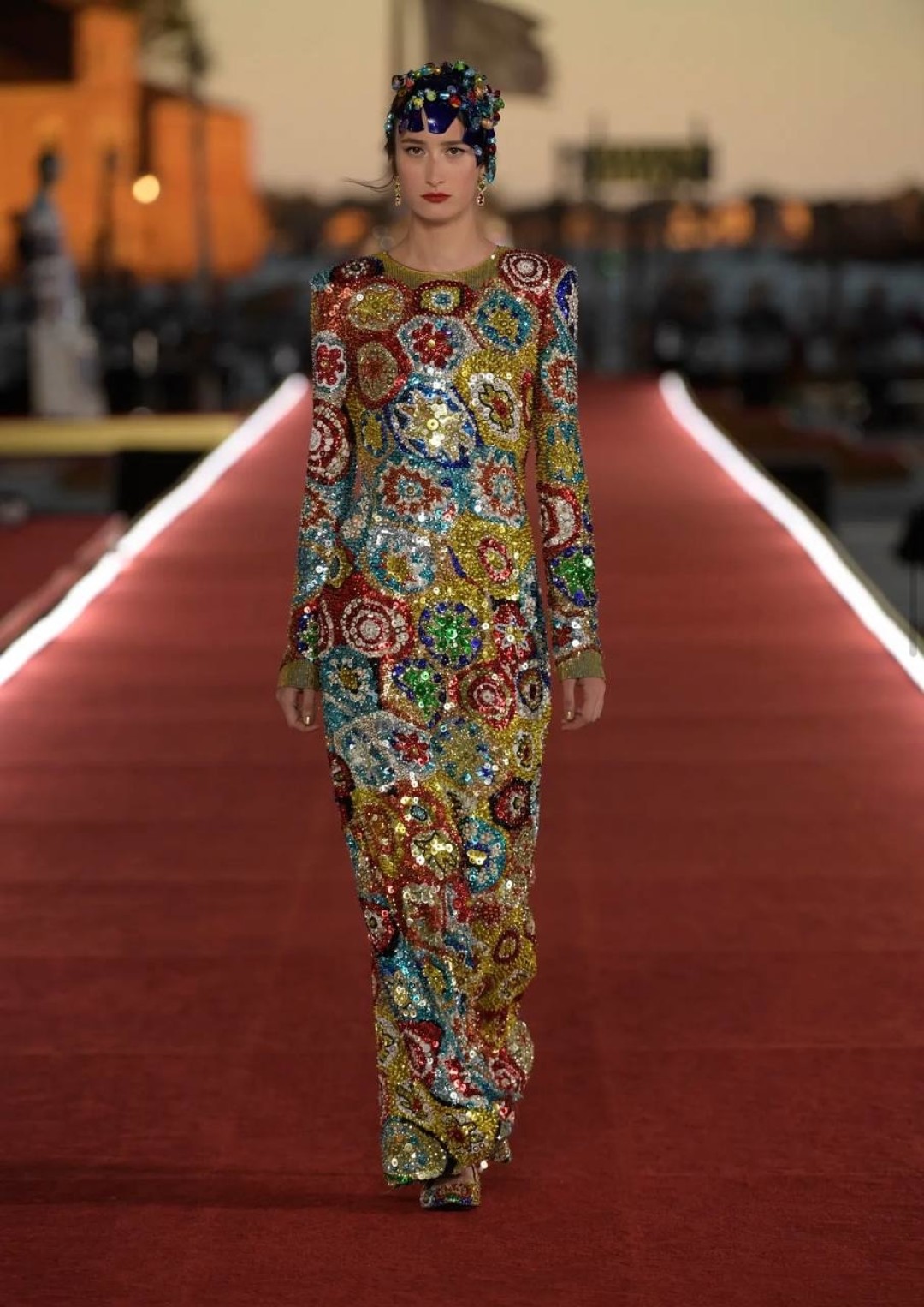 Dolce & Gabbana представили свою новую кутюрную коллекцию Alta Moda из ста вечерних платьев. В коллекцию вошли платья в пол с принтами и вышивками, изображающими фрески, мозаики, виды, достопримечательности и символы Венеции, коктейльные платья, жакеты с объемными плечами, платья из хрусталя и пайеток.