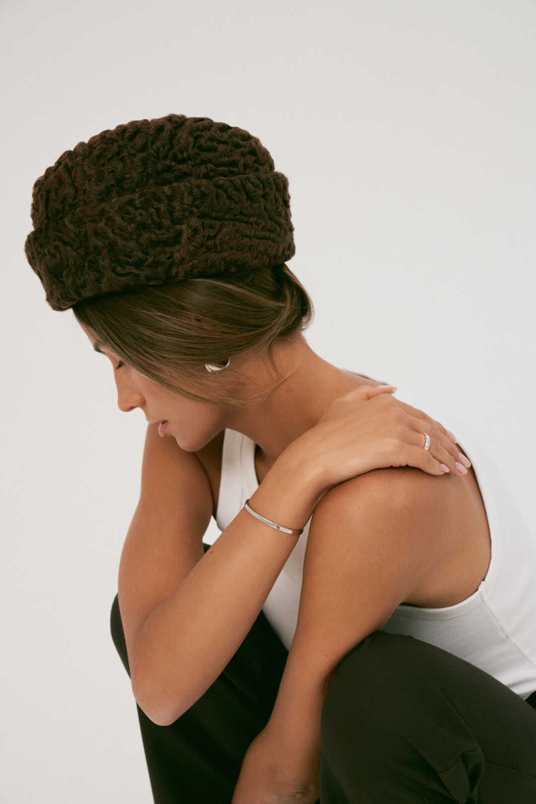 В новую коллекцию дизайнер марки Ольга Рузакова включила балаклавы с нашивками в черном, бежевом, зеленом, оранжевом и синем оттенках, молочные, черные и коричневые панамы из натуральной овчины, черные, коричневые и зеленые береты-«пирожки» из каракуля, а также две шляпы из фетра черного и коричневого цветов. Поля головных уборов расписаны вручную названием марки в стилистике уличного граффити. Кроме того, каждая шляпа дополнена съемным металлическим каффом.
