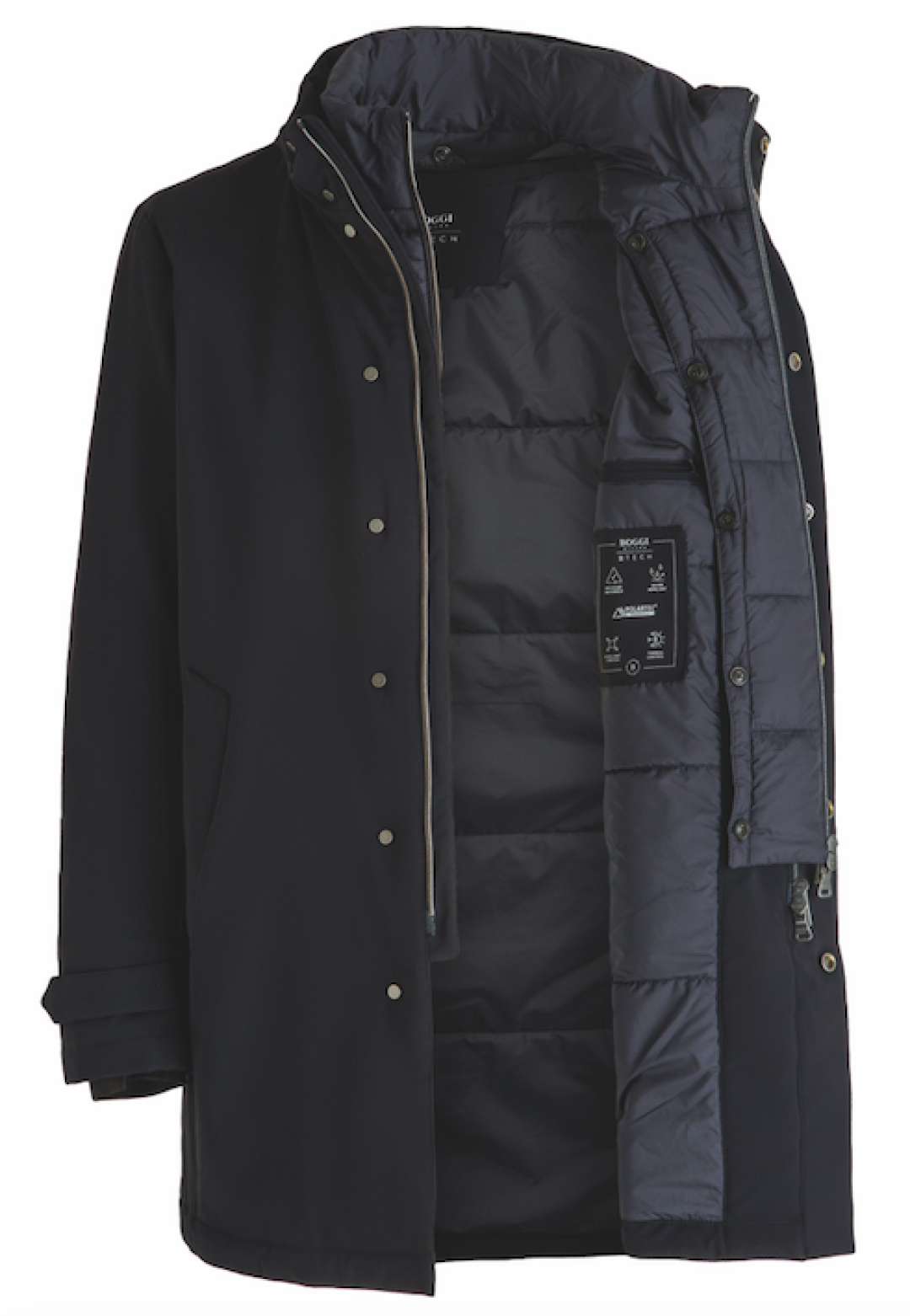 Не холодно, не жарко, не промокает: пальто из аутдор-линии B-Tech Boggi Milano можно без преувеличения назвать инновационным, столько в нем патентов бренда. Это и переработанный материал утеплителя, и теплоизоляция полыми волокнами, и технология удерживания воздуха.