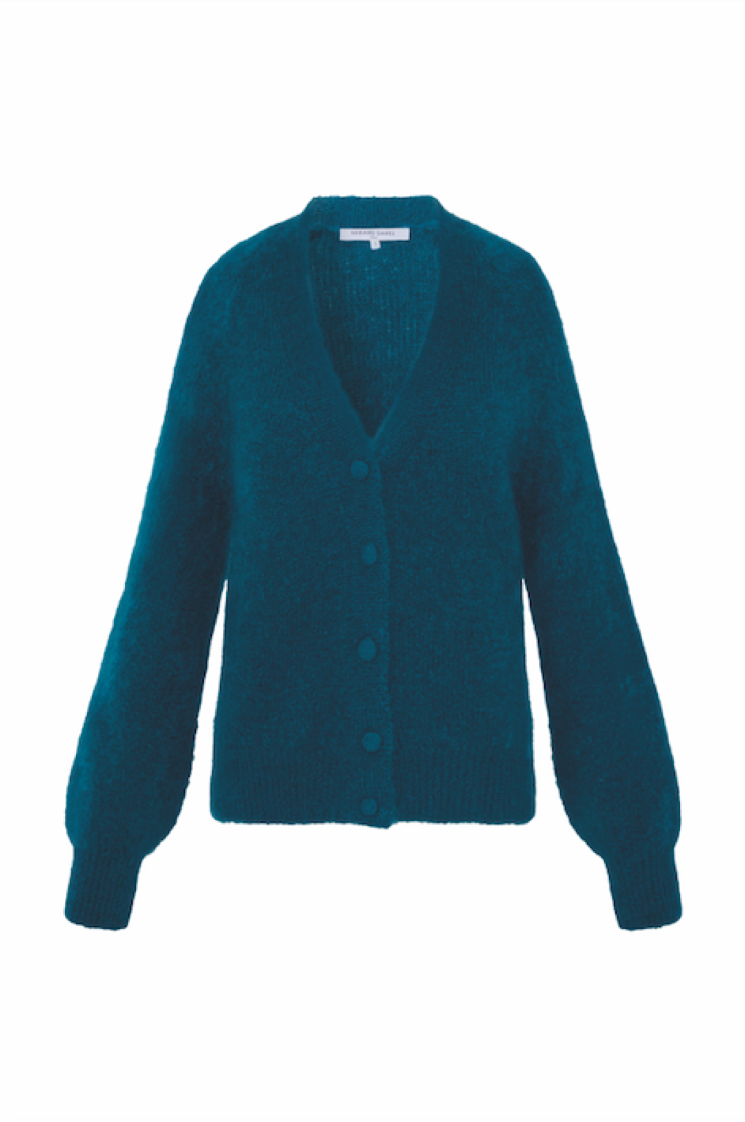В кардигане цвета морской волны от Gerard Darel отправимся в заснеженный лес обниматься с деревьями, а потом сядем к камину с толстым-претолстым романом. Такое настроение.