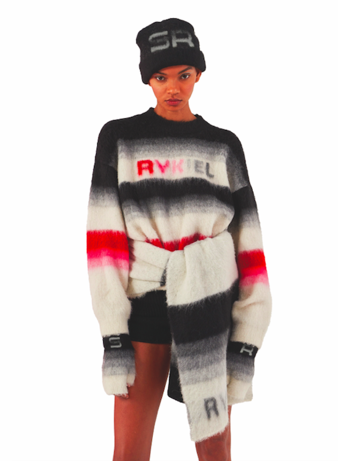 Самый парижский бренд? Конечно, Sonia Rykiel. Новые владельцы марки — основатели онлайн-магазина Showroomprive Эрик и Мишель Даяны — деликатно работают с архивами и намерены вернуть нам знаменитые полоски. Из первой после перезапуска коллекции забираем пушистый свитер с логотипом. Полосатый!