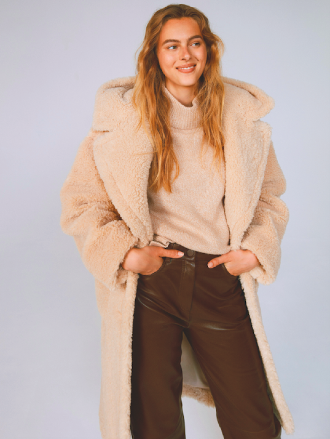 Любимые оттенки крем-брюле теперь и в морозы: выбираем теплую шубу из экомеха Claudie Pierlot и шерстяной свитер тон в тон! Совсем идеально — с вельветовыми брюками-клеш. Очень уютно, очень пушисто.