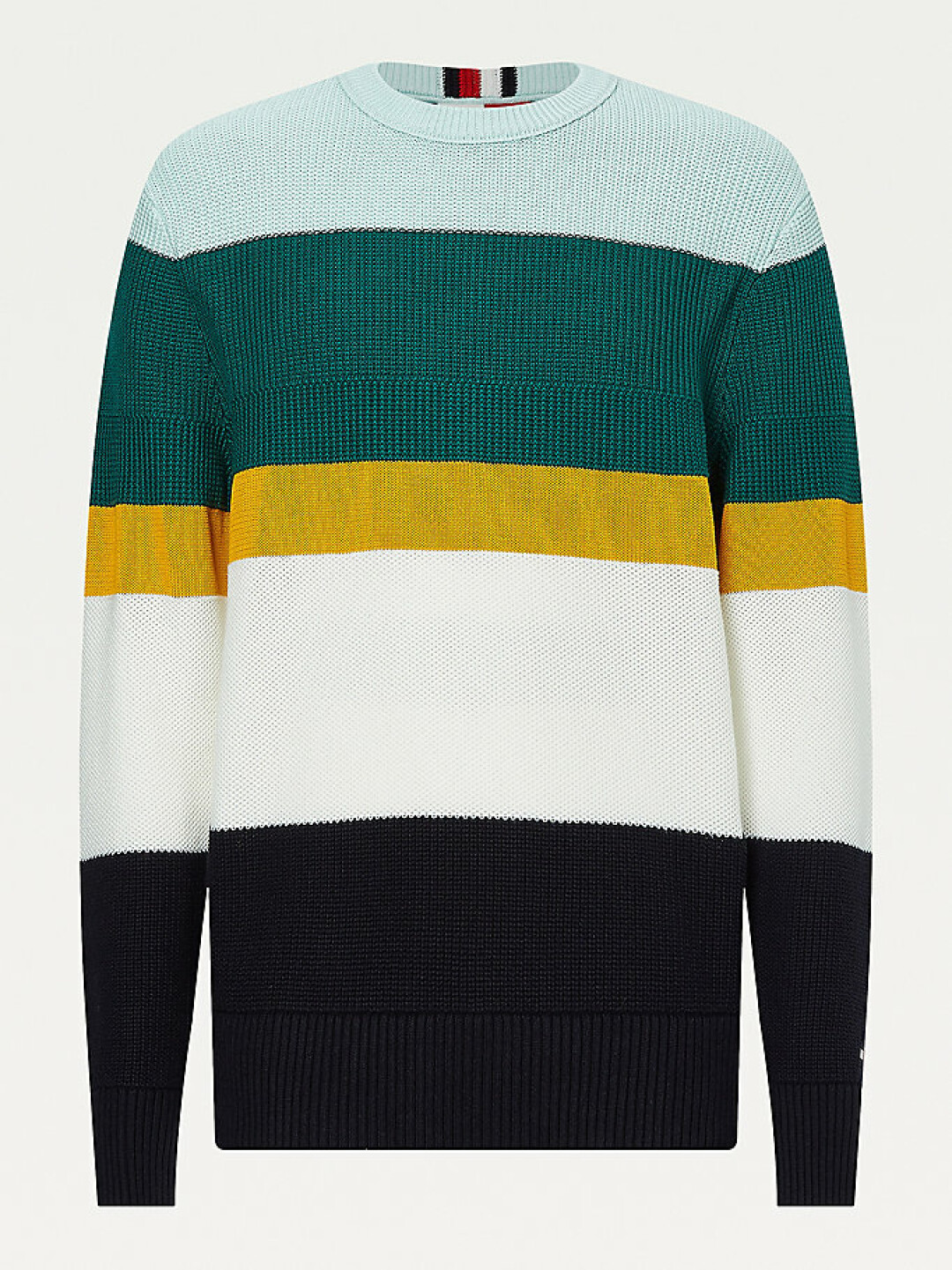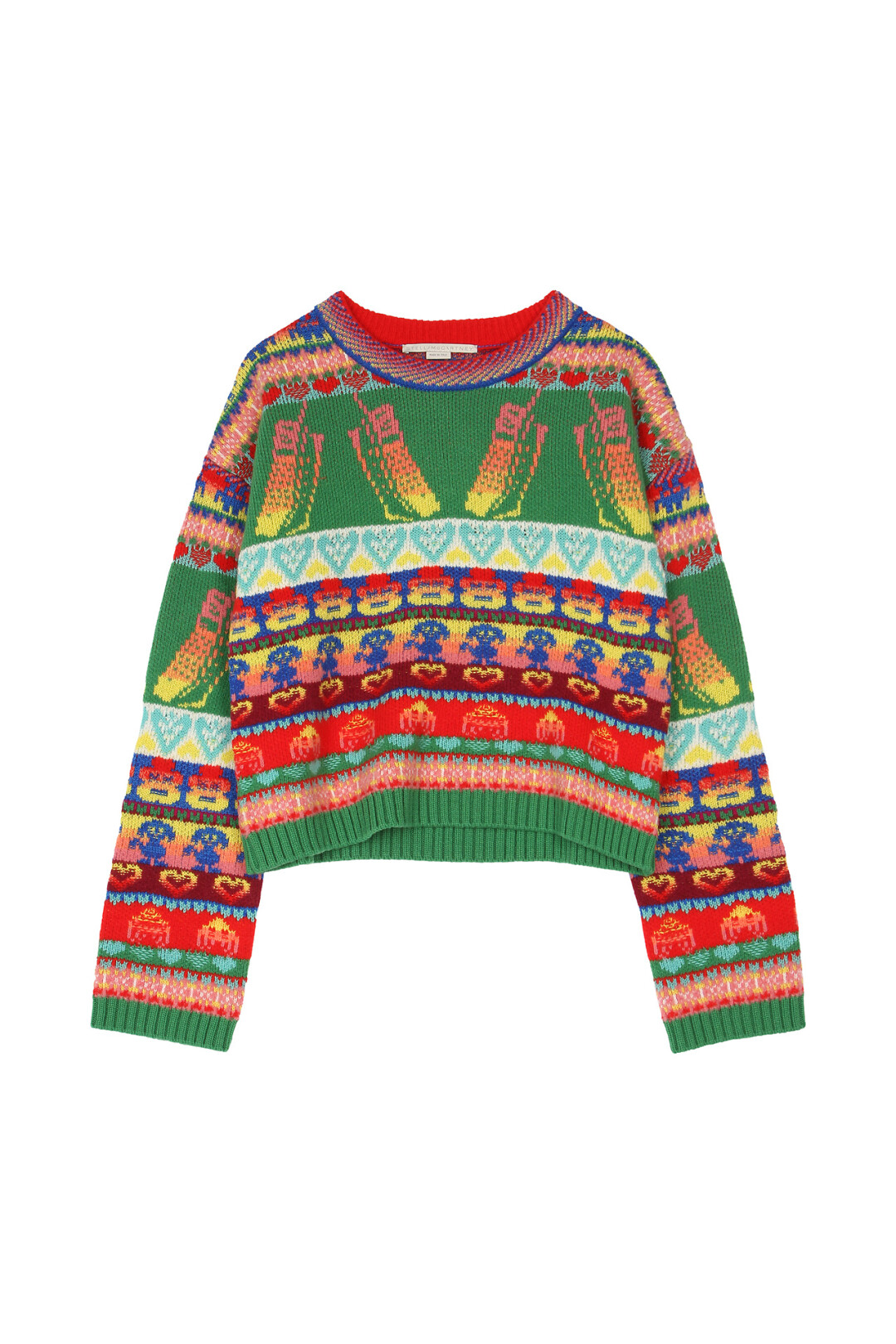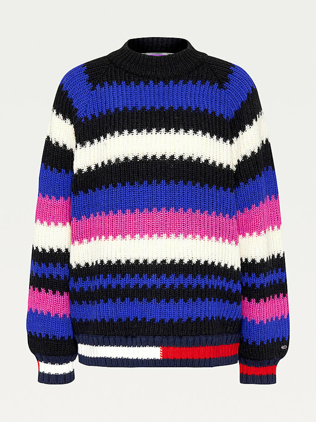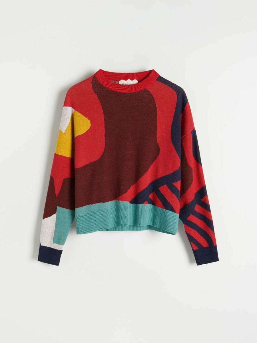 Желтый, красный, голубой — выбирай себе любой. Свитеры, способные поднять настроение, есть как у люксовых, так и у масс-маркет-брендов. Причем это необязательно модели, соединяющие в себе все цвета радуги, но и однотонные с запоминающимися деталями. Хороший пример — свитер Stella McCartney, дополненный желтыми элементами на рукавах.