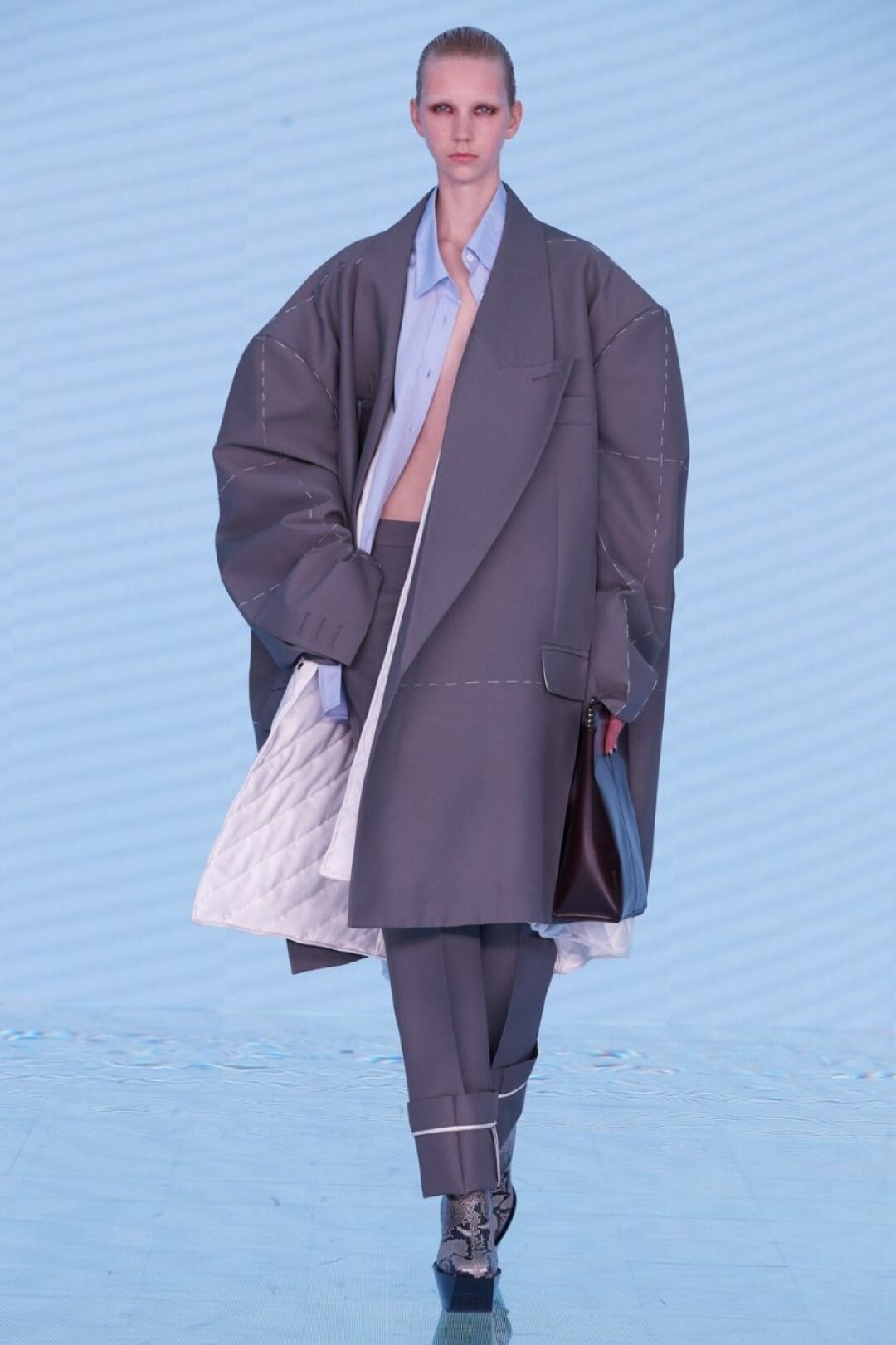 Коллекция бренда осень-зима 2022-2023 состоит из тридцати шести образов и получила название Foundation. В нее вошли максимально оверсайзные пиджаки, дизайн которых напоминает выкройки, юбки в пол, дополненные несколькими ремнями, свитеры и джинсы словно с оторванными элементами, жилеты и костюмы. Главный аксессуар — сумка-коромысло, носить которую нужно на спине и плечах.