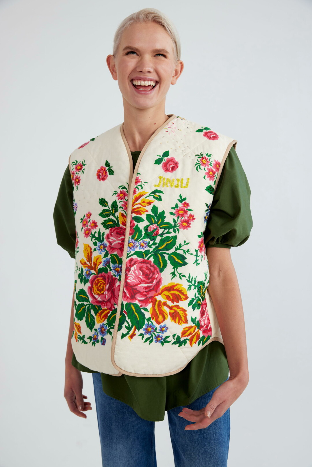 Проект FRONT, объединяющий дизайнеров, которые работают с народными и ремесленными традициями, представил новую коллекцию. Она получилась многонациональной — в нее вошли как вещи от постоянных резидентов проекта, так и от марок-новичков. Среди новых брендов — узбекистанская марка JIN JU кореянки Анастасии Ли и марка 18-летней Lika Saralp из Кабардино-Балкарии.