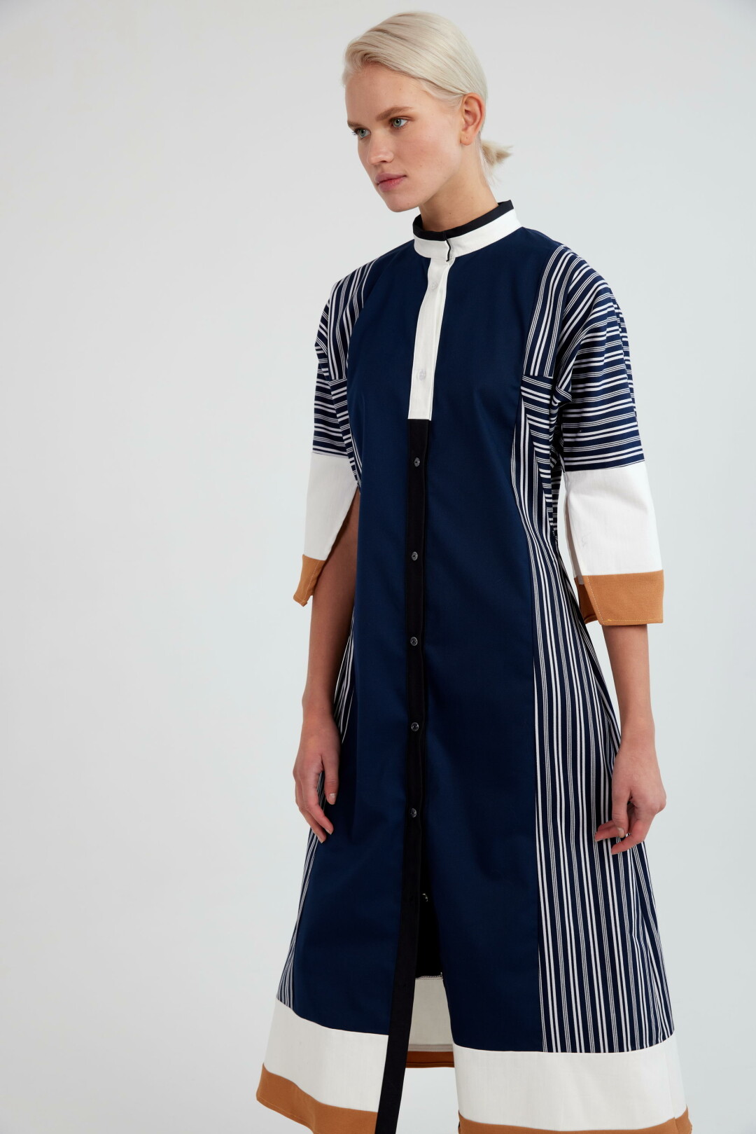 Весенне-летняя коллекция FRONT состоит из экологичных жилетов JIN JU, в основе которых винтажные платки, пальто Lika Saralp с элементами национального костюма, шапок-шлемов, косынок и повязок группы Labase, свитшотов GRUPPA с принтами, вдохновленными солнцем. Также в коллекцию вошли пальто-чапаны дизайнера Ани Толстой. Они выполнены из узбекского адраса на подкладке из хлопка и украшены авторскими принтами.