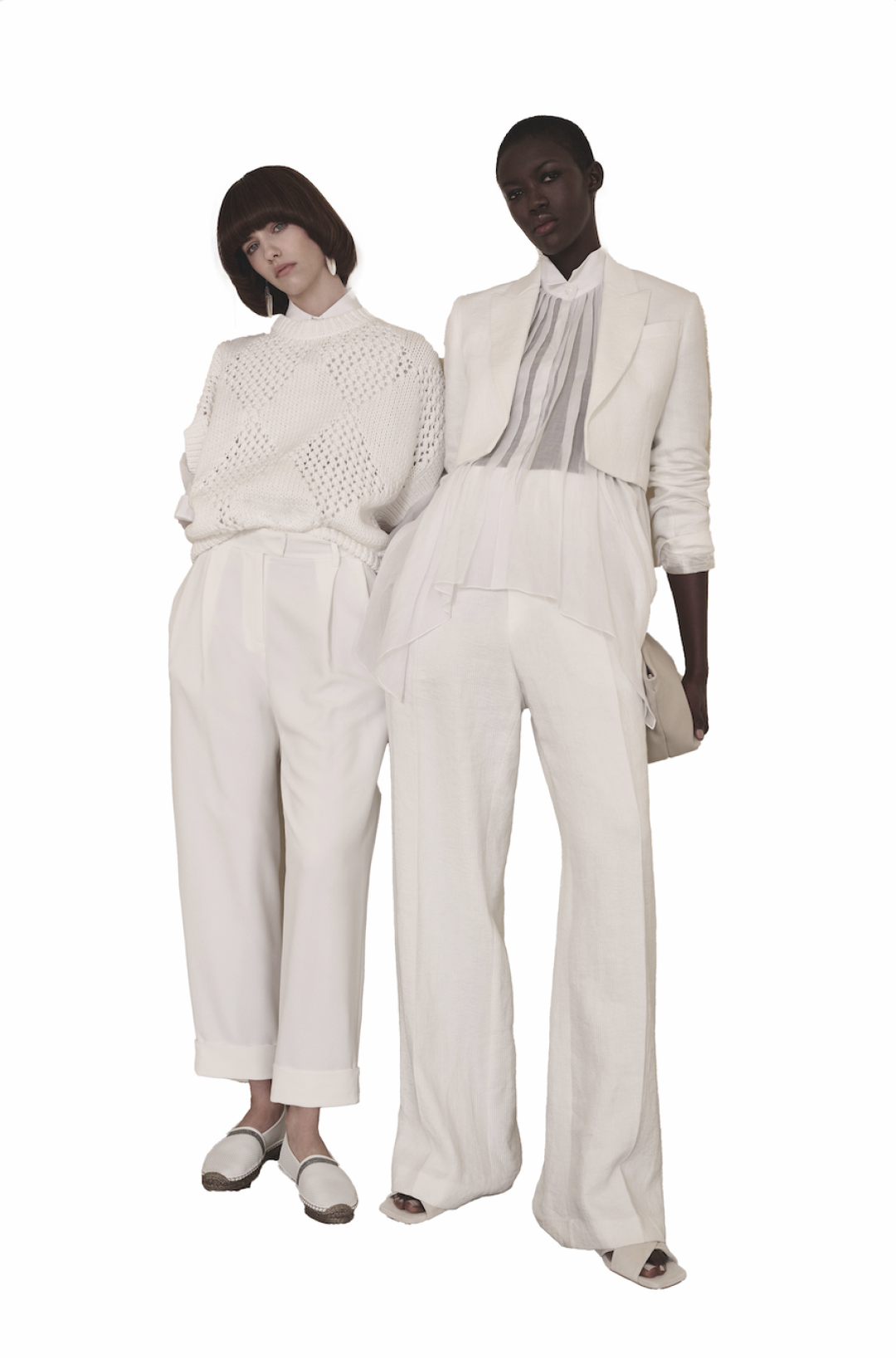 Тосканский бренд Brunello Cucinelli отдает дань портновскому искусству — идеально скроенные брюки и жакеты, рубашки и пиджаки, как обычно у марки, из лучших тканей — тонкой шерсти, шелка и кашемира. Цвет? Total white.