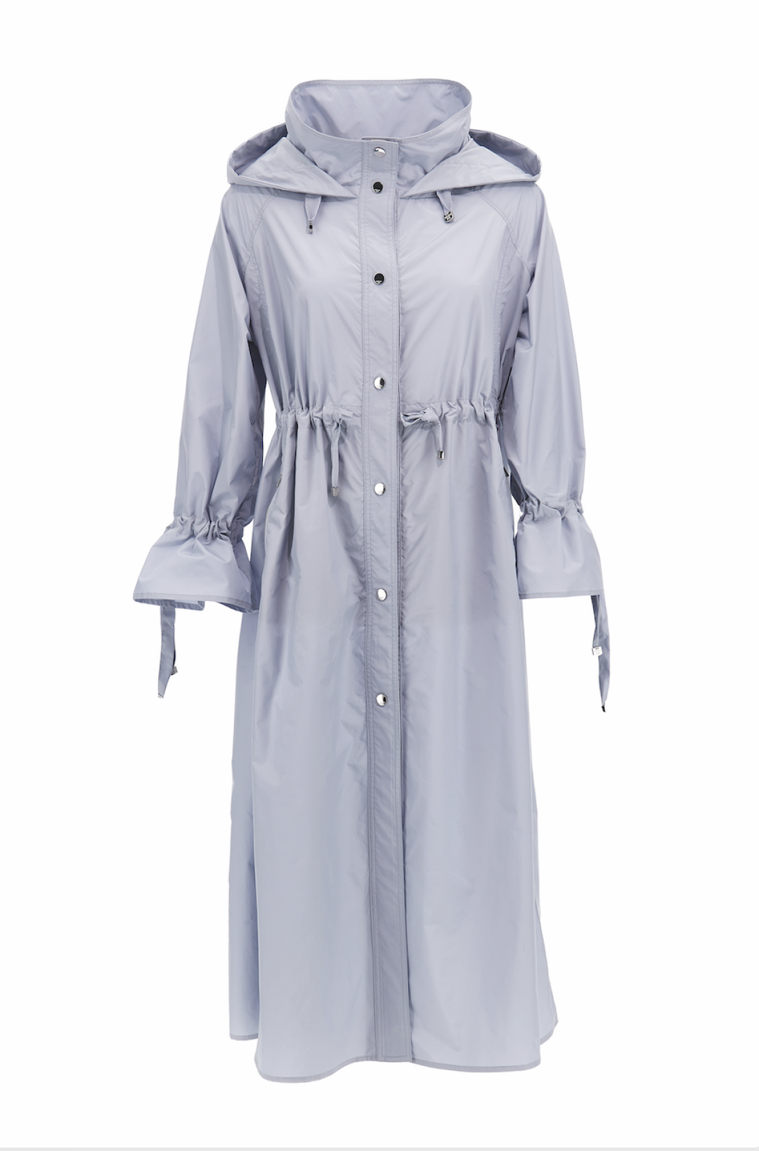 Легкий плащ DIEGO M с капюшоном — идеальный спутник петербуржцев на апрель. Смотрите сами: переливающийся стальной цвет, легкая, но теплая ткань и деликатные элементы вроде завязок на рукавах.