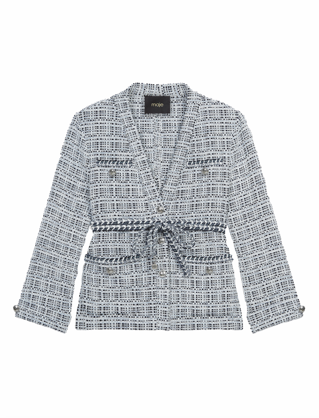 Самый актуальный пиджак весны? Gerard Darel из денима! Милитари-акцент четырех накладных карманов чуть смягчает пояс, который можно завязать бантом.