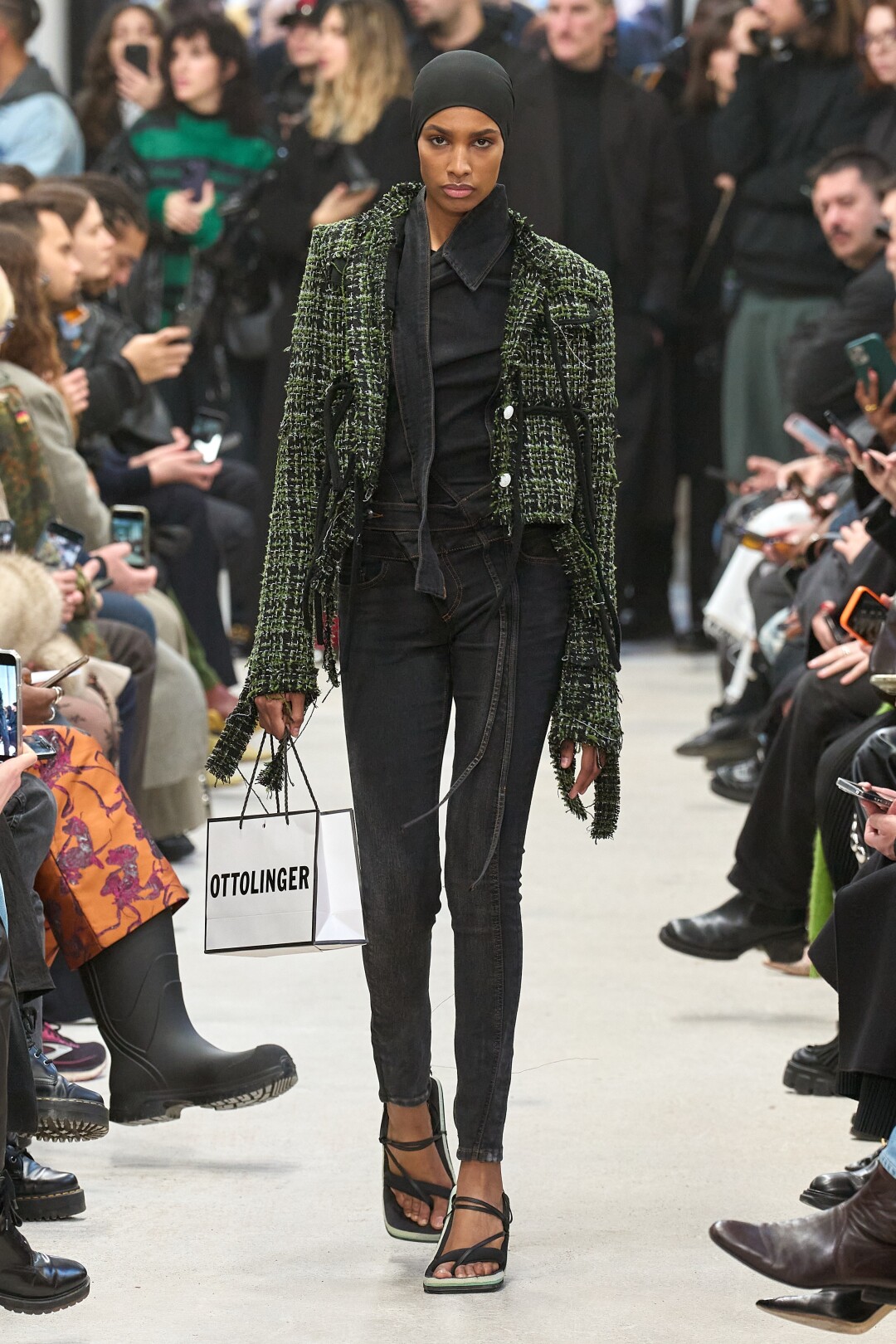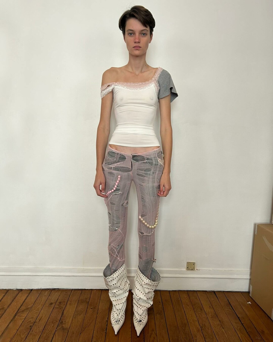 В эру оверсайз-балахонов Balenciaga мода на скинни пошла на спад, однако с появлением оземпика на подиум все чаще стали возвращаться ультрафеминные силуэты. Первой глобальную тенденцию заметила Миучча Прада в Miu Miu и в сезоне FW'24 предложила носить вместо привычных палаццо (хорошо забытые) узкие джинсы. Монтажная склейка — теперь даже патриархи оверсайза Демна и Гленн Мартенс предлагают снова достать скинни и надеть их вместе с ботфортами (что? да!).