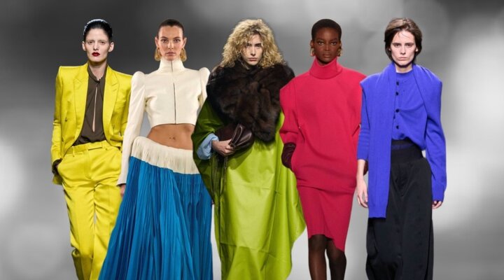 В сторону напряженного индиго кивнули Dries Van Noten и AlainPaul: Джулиан Клауснер предложил запастись стейтмент-пальто с трендовым воротом-стойкой из переливающейся шерсти, а Ален Поль показал сложносочиненный кардиган с дабл-рукавом-шарфом (заправляем в черные капроновые колготки!). В ультрамодной синей палитре выделились два фаворита — насыщенный электрик и инновационный цвет оло. Первый поддержал Питер Мюлье из Alaia (придумал плиссированную колорблок-юбку с имитацией кринолина), а второй появился в коллекции Gucci (в виде атласной блузы и полупрозрачной юбки с вышивкой и стеклярусом). В сторону цитрусового юдзу кивнула Сара Бертон в дебютном шоу для Givenchy, а Хайдер Акерманн ворвался в дом Tom Ford, воскресив приталенные секси-двойки отца основателя в желтом атласе. Пока Миучча Прада под руку с Рафом Симоносом украшают лаймовый дождевик добротным меховым воротником (фэшн-мезальянс!), Энтони Ваккарелло объявляет power-fall и отшивает фуксиевые плечистые платья в стиле 80-х.