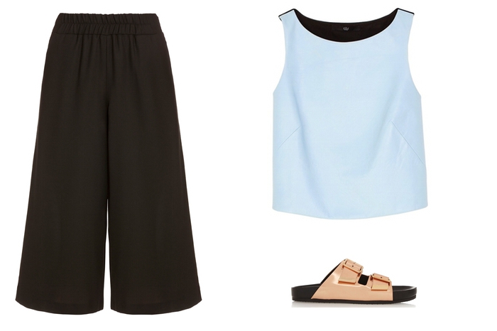 Недостаток кюлотов — в их опасной длине. Если вам повезло с длинными ногами, можно носить эти брюки с чем угодно — от биркенштоков до беговых кроссовок. Если вам повезло с чем-то другим — лучше встать на танкетку или шпильки и не рисковать с кюлотами светлых оттенков.