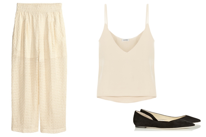 Брюки H&M, 500 рублей; топ Toteme, туфли Jimmy Choo