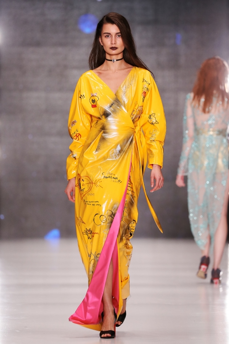 Главный дебют Mercedes-Benz Fashion Week Russia — показ бренда Sorry I’m Not, основанного в Петербурге дизайнером Никитой Моисеенко. В женской линии показаны диско-комбинезоны, платья с пуделями и жирафами, пальто, скроенные как халат. А в мужской линейке дизайнер рискнул с гендерно нейтральными вещами — костюмами, имитирующими пижаму, с цветочной вышивкой, широких шортах, на подоле которых можно разглядеть кружево, и меховые пальто: всё это будет хорошо смотреться и на девушках. Часть вещей из новой коллекции будет доступна в московском шоу-руме Sorry I’m Not и онлайн-магазине бренда.