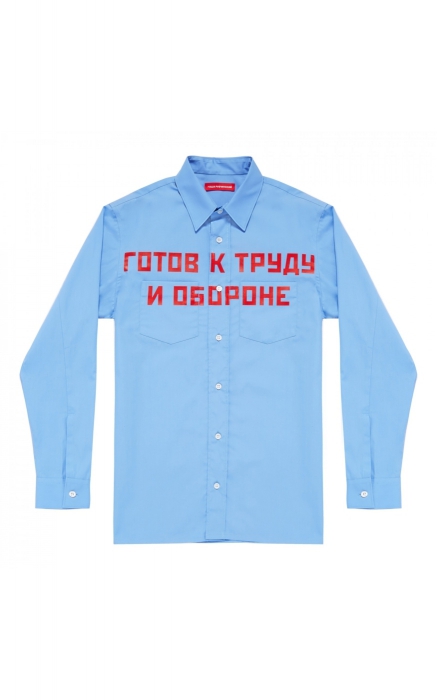 Рубашкой из советской коллекции Gosha Rubchisnkiy можно красноречиво отвечать на все вопросы о планах на лето. (Au Pont Rouge)