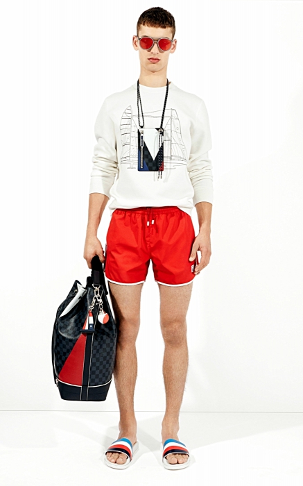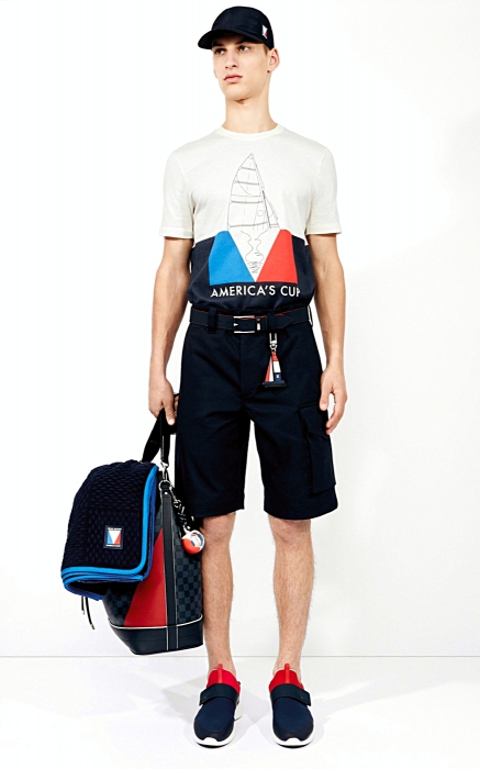 К тридцатитрехлетнему партнерству компании Louis Vuitton с престижнейшей регатой «Кубок Америки» помимо футляра ручной работы для самого кубка и медалей, которые вручат по бедителям по завершении гонки в июне 2017 года, выпущена капсульная мужская коллекция в красносиней палитре и графических принтах, где есть и топсай деры, и ветровки, и непромокаемые чехлы для документов. (Louis Vuitton)