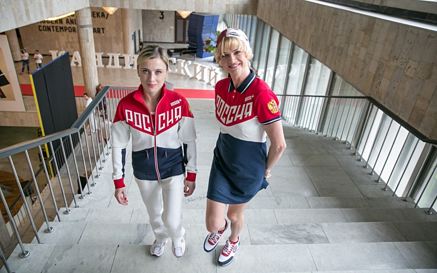 В коллекции «Олимпийские одежды» BoscoFresh помимо художественных задач решались и дипломатические: официальная форма сборной России должна подчеркивать национальную принадлежность, а также передавать исторические и культурные традиции. Именно поэтому за основу были взяты цвета флага страны, к тому же идеально совпавшие с самым хитовым приемом сезона — красно-бело-синим колорблоком, сочетанием, которое за лаконичность и броскость обожали советские художники-авангардисты 1920-х годов. Их эстетика и стала лейтмотивом всей линии — принты на тему плакатной живописи Александра Родченко украсили футболки, толстовки и платья, а переплетения геометрических форм с оригинальных текстильных дизайнов Варвары Степановой превратились в фигуры атлетов, которые соревнуются на свитшотах и поло. (BoscoFresh)