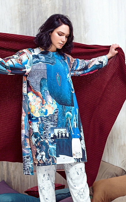 Основатель марки GO Оля Глаголева работает только с экологичными материалами. В новой линии Authentic, в коллекции под названием «Дом» она выпустила пять моделей свитшотов из переработанных пластиковых бутылок. Вещи выкроены из полотна-коллажа с принтом ручной работы, которое расписано на пять блоков: «Огонь», «Вода», «Воздух», «Земля» и «Любовь». Они, по замыслу модельера, символизируют единое пространство планеты. (Subbota)