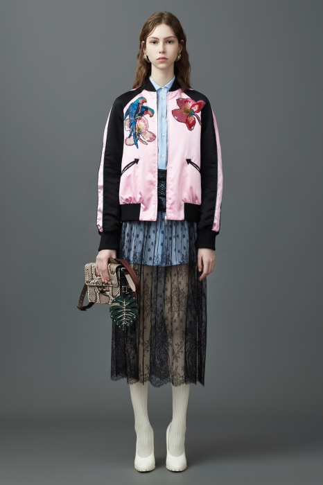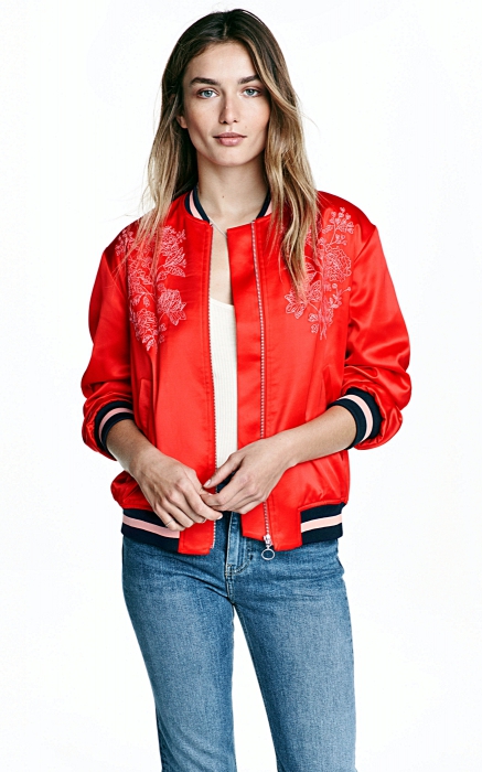 Яркие атласные бомберы с вышивкой появятся только в круизных коллекциях 2017-го года, но благодаря масс-маркету покупку можно не откладывать. В Mango — куртки нежных пастельных оттенков, в H&M — алые, в Zara привезли позолоченные бомберами с тиграми, как у Алессандро Микеле. Кружевной бомбер Gucci продается в ДЛТ, а наш фаворит — стеганая куртка House Holland с двумя скрещенными помадами и цветными камнями на манжетах — доступен в Au Pont Rouge.
