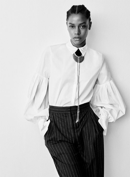 Ключевыми вещами нового сезона стали брюки с завышенной талией, белые рубашки и блузы с фольклорными мотивами, классические пальто и платья с запахом.В продажу премиальная коллекция поступит 8 сентября.