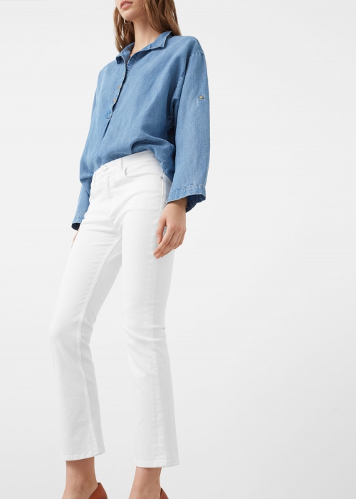 Белая или голубая рубашка — лучшая инвестиция по всем соображениям. Блузы с оборками или открытыми плечами успеют надоесть за один сезон, а с базовыми вариантами можно придумать десяток сочетаний: надевать их с мини-юбками, под платье-комбинацию, с шортами летом или шерстяными брюками зимой.