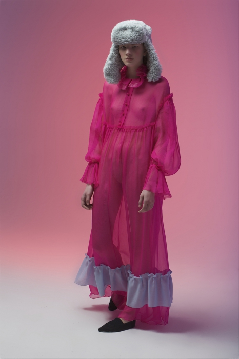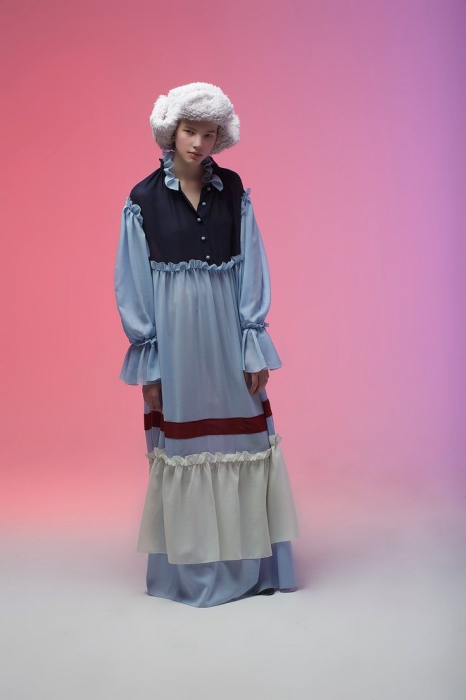 Мы еще ждем, когда на волне моды восточного блока дизайнеры и стилисты вспомнят про ушанку: по крайней мере, дизайнер Вика Газинская сделала все, чтобы эффектно ее подать. Для повторения лука нужно простое платье в пол, шапка из шкафа папы или дедушки и запас самоиронии.