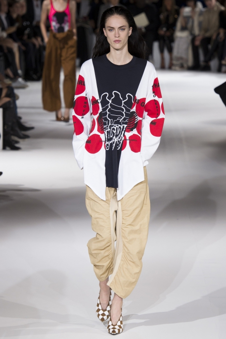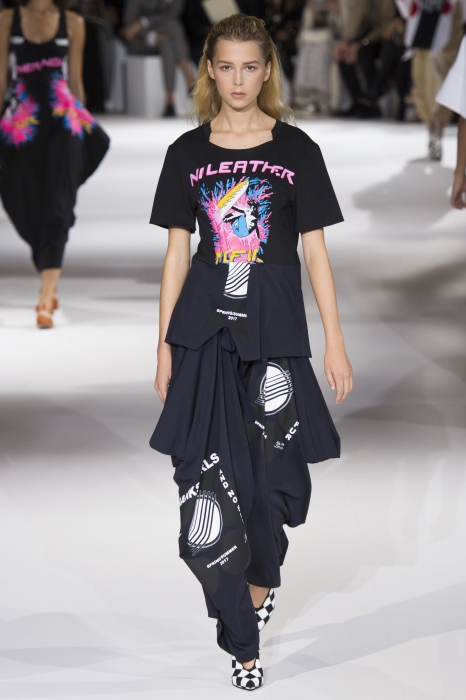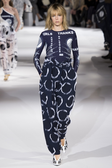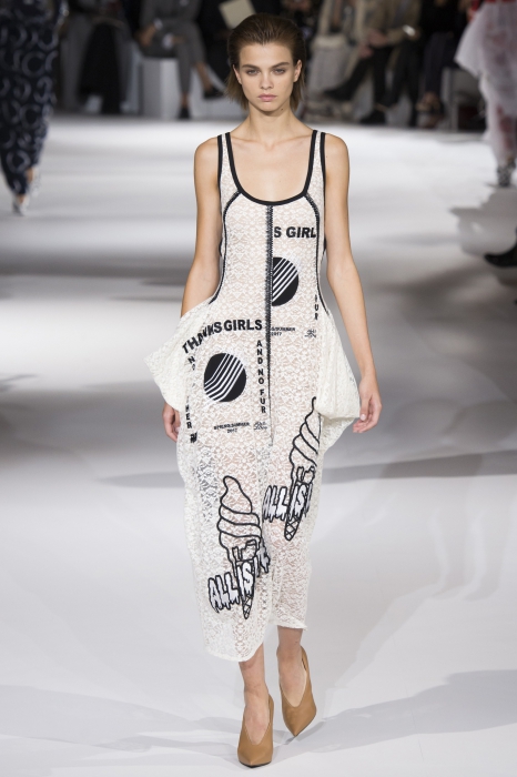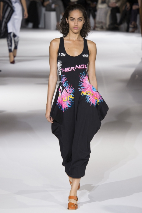 «Girls Thanks, and No Fur, No Leather» — цветные надписи с маек и платьев Стеллы МакКартни лучше всего описывают концепцию новой коллекции. Британский дизайнер продолжает делает вневременные и внесезонные вещи и пропагандировать экологичный подход к созданию одежды. В наши вишлисты попали объемные комбинезоны, платья-рубашки и брюки с кулисками вместо ремня.
